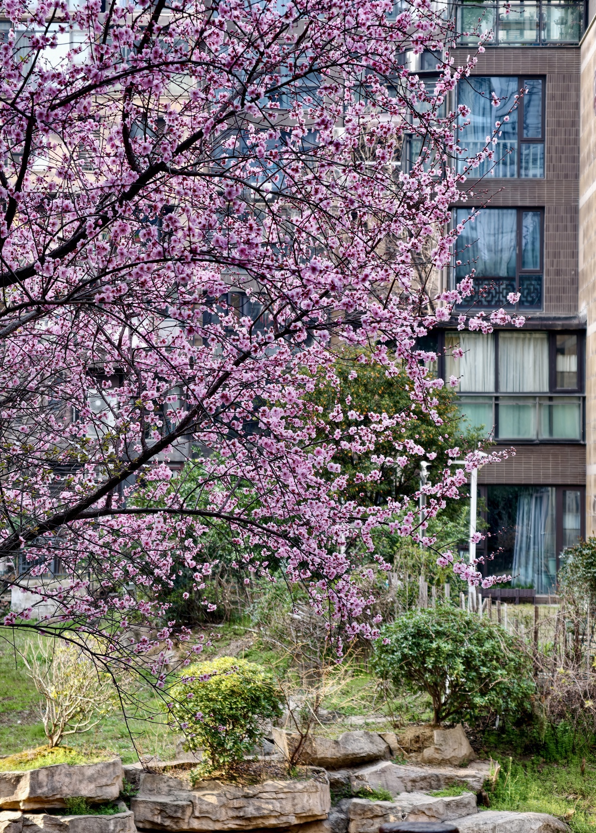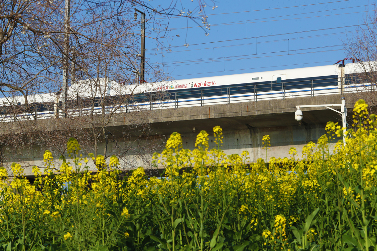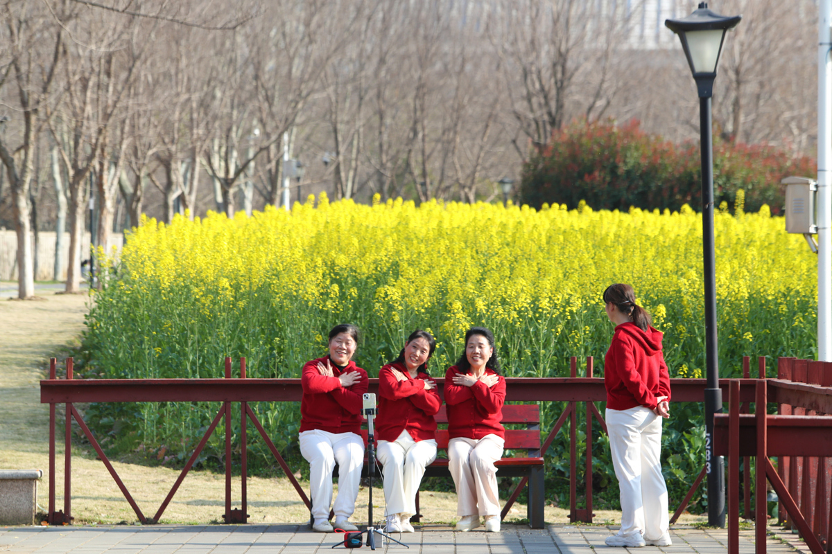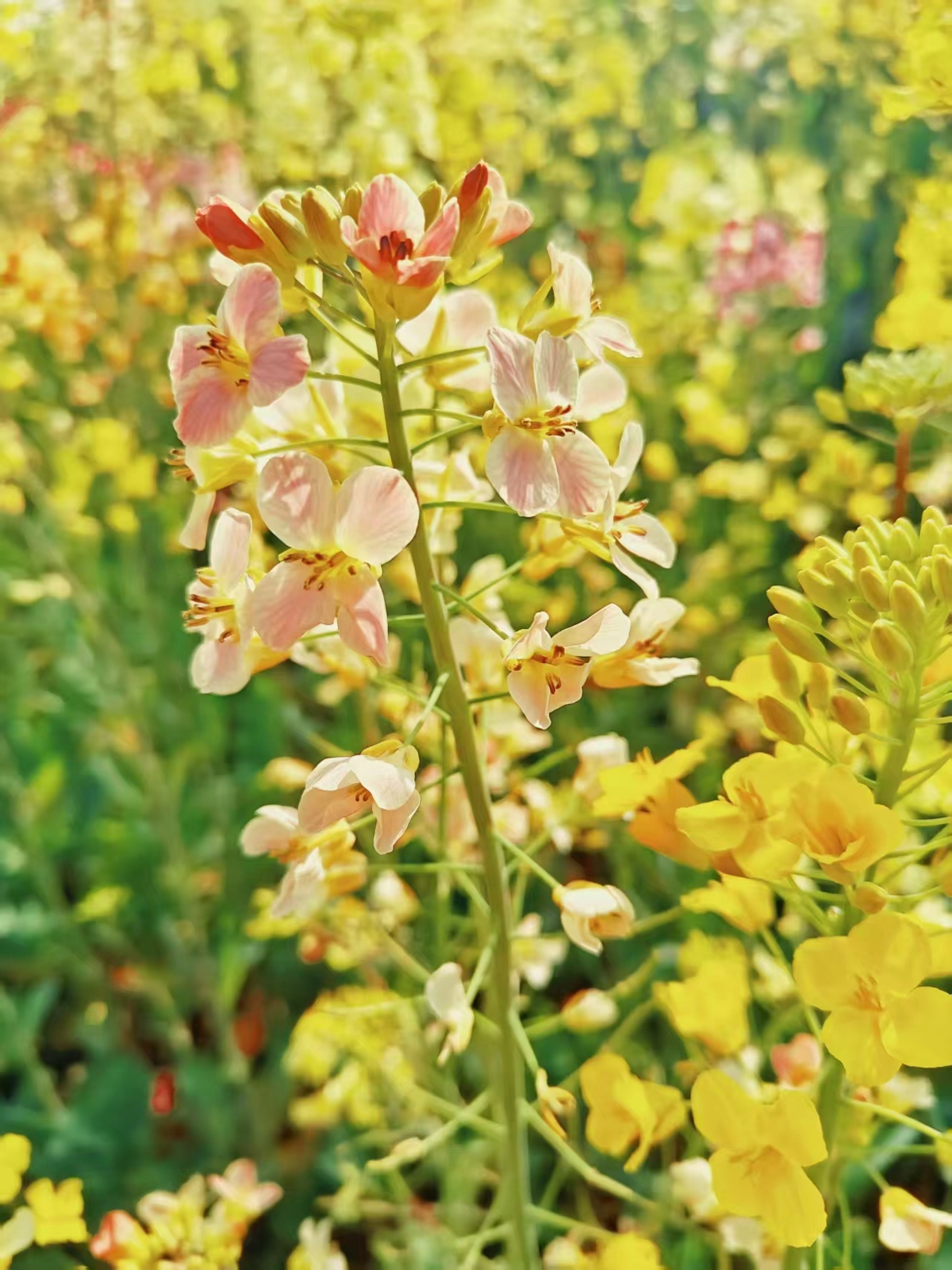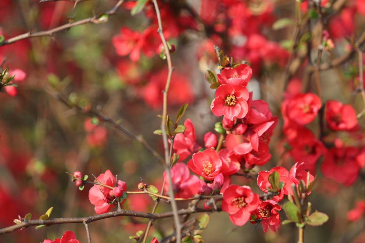 【南湖幸福湾公园,油菜花、贴梗海棠同框】
