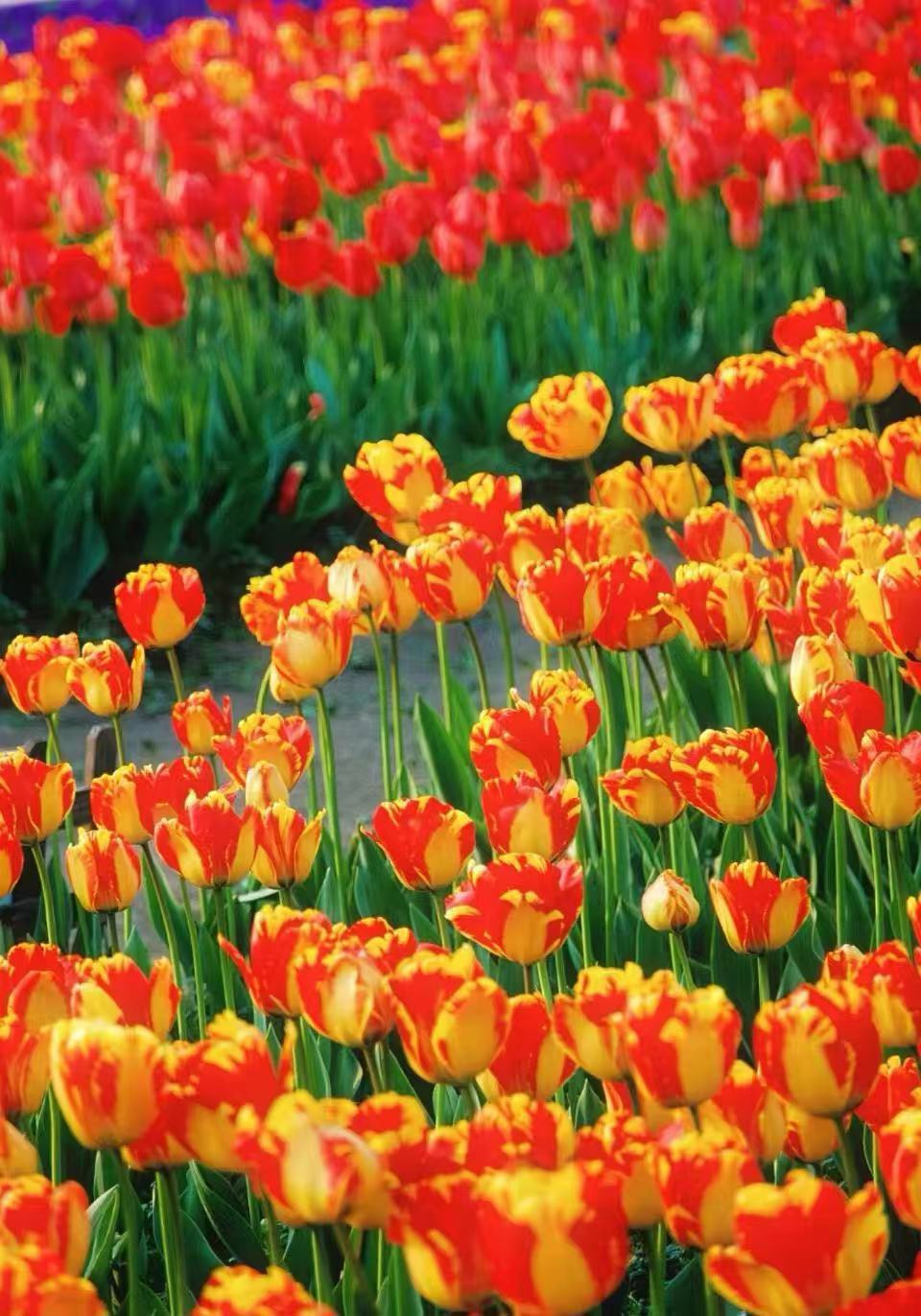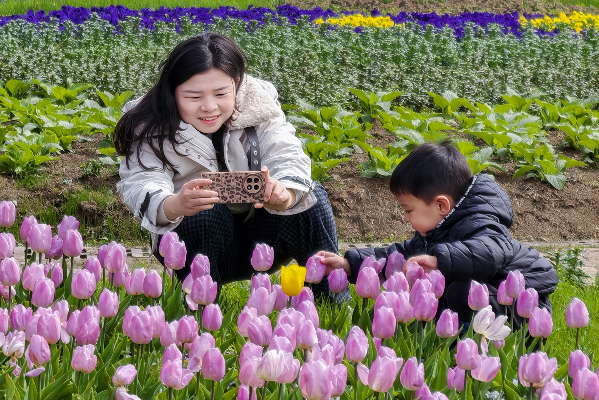 位于武汉市东西湖区柏泉街的武汉农业集团东西湖郁金香主题公园内色彩斑斓、花香四溢,诚邀八方来客共赴这场春日之约。据介绍本次花展将持续至5月10日,随着气温逐渐回暖,预计3月14日至4月6日将迎来最佳观赏期,届时园内近60万株郁金香将竞相绽放,呈现最绚烂的春日画卷。欧洲风情广场成为游客打卡热点。大红色的大朵郁金香格外引人注目,与远处的风车、蓝天白云相映成趣,宛如一幅浓墨重彩的油画。粉紫、明黄、暖橙等各色郁金香错落有致,微风拂过,摇曳生姿。