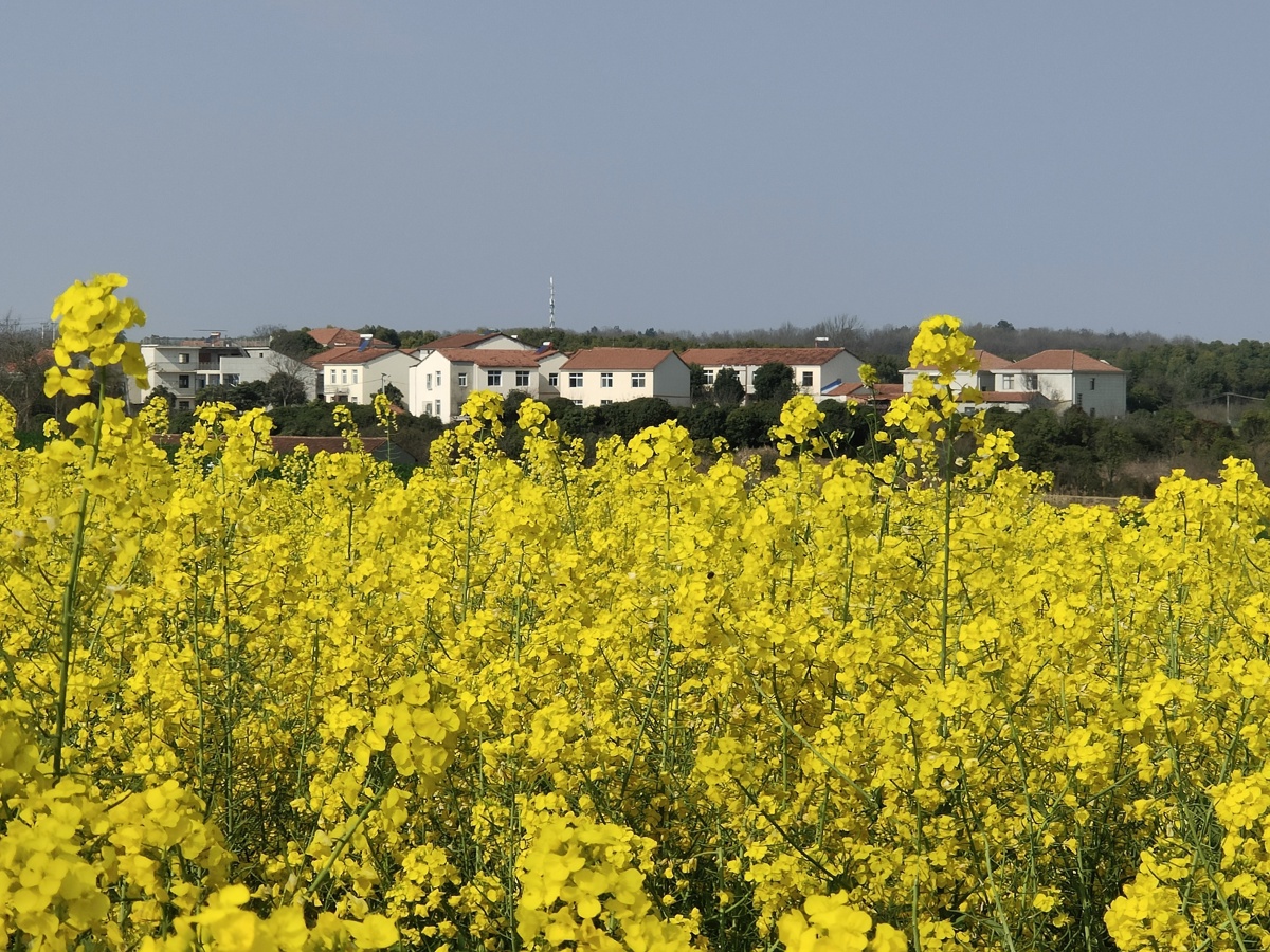 洪山区杨春湖公园,油菜花和玉兰花同框