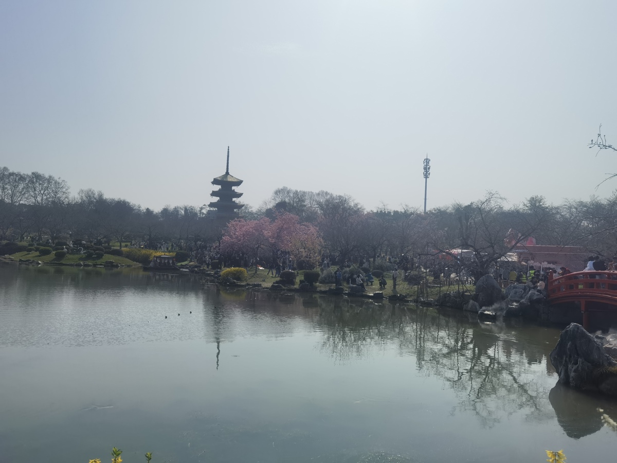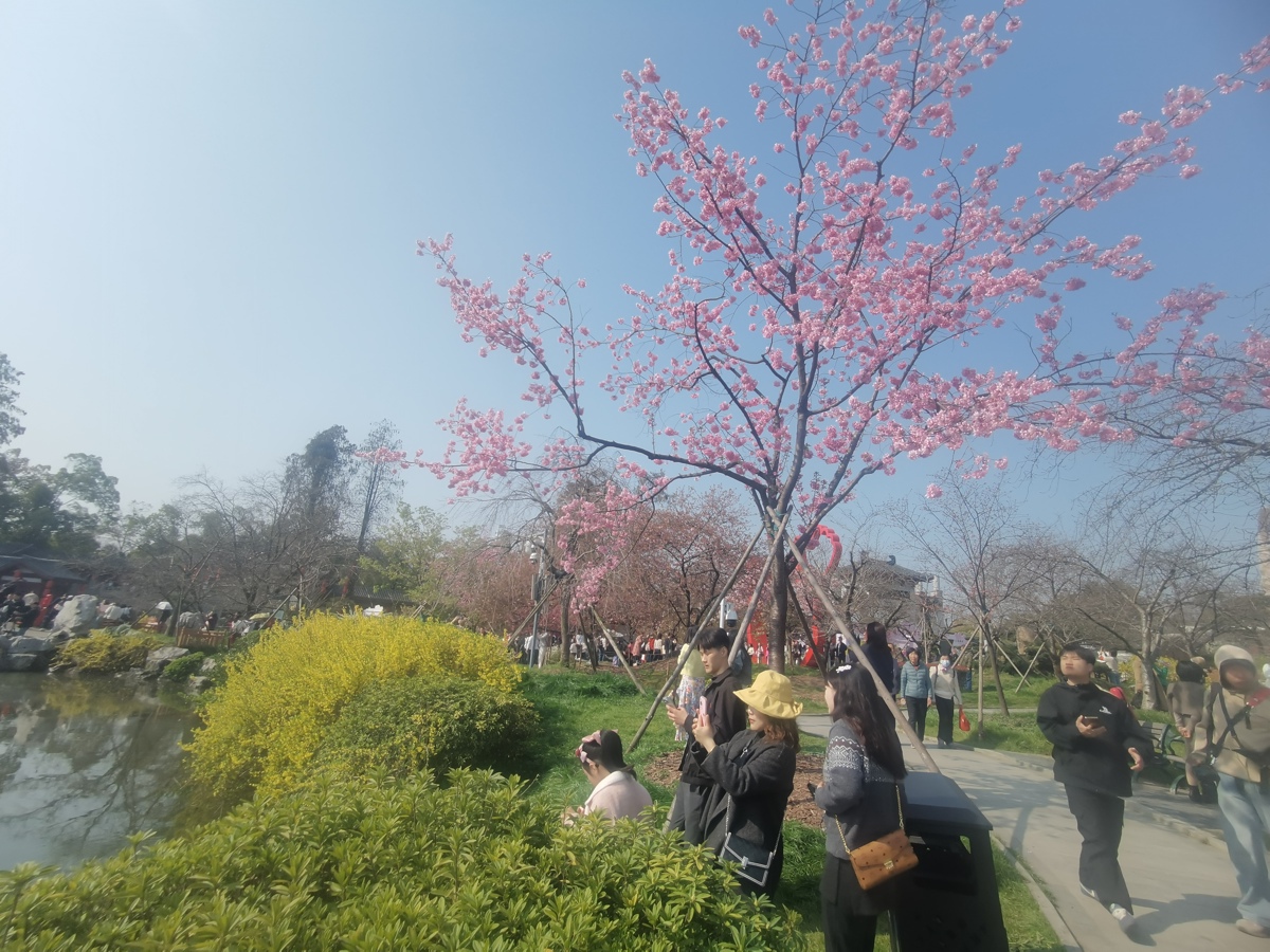樱花园内,早樱开放,吸引游客拍照打卡。