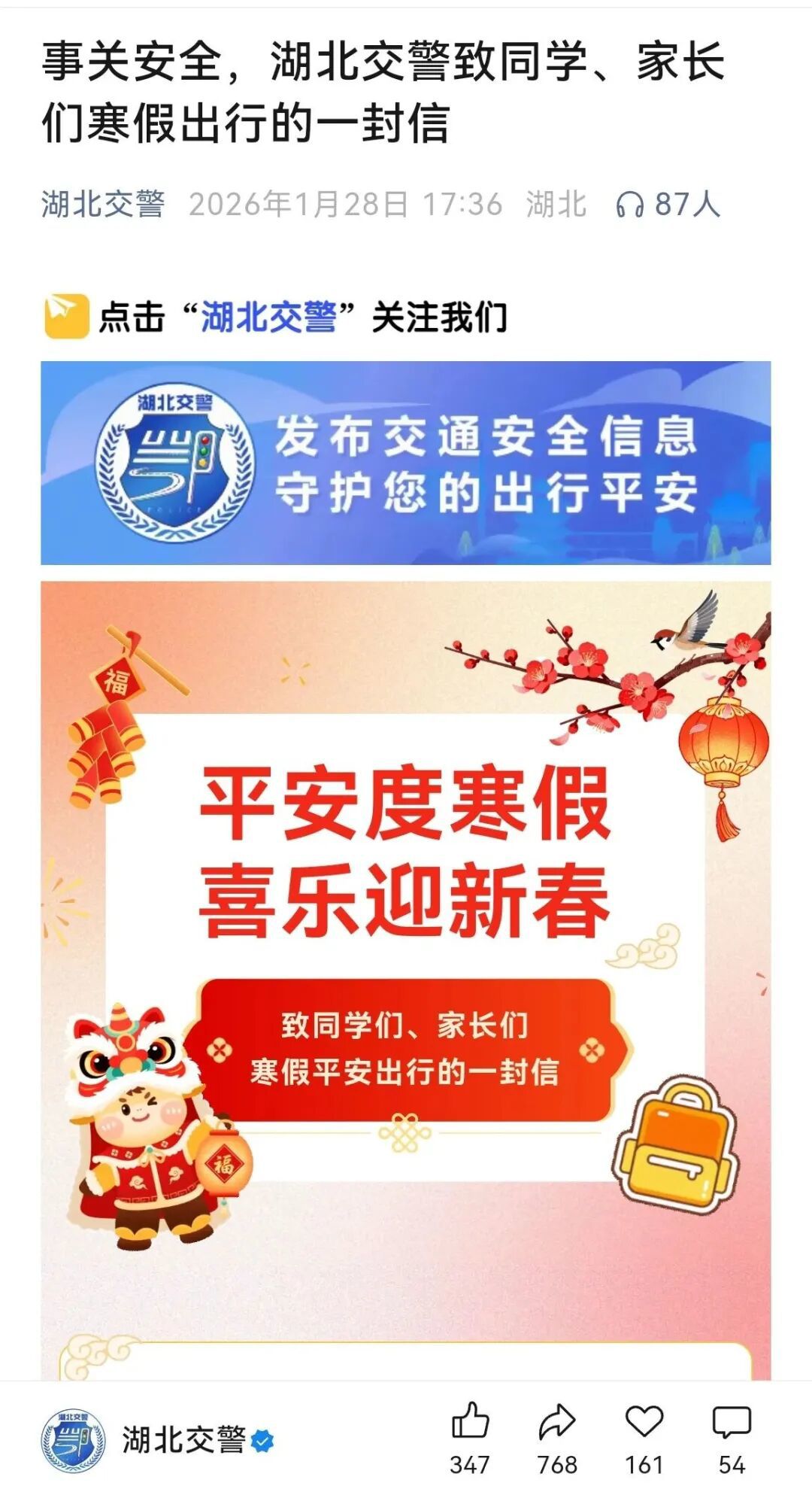 湖北交警在春运期间全力以赴,做好保安全、保畅通各项工作,为春运收官交上了一份圆满的答卷: