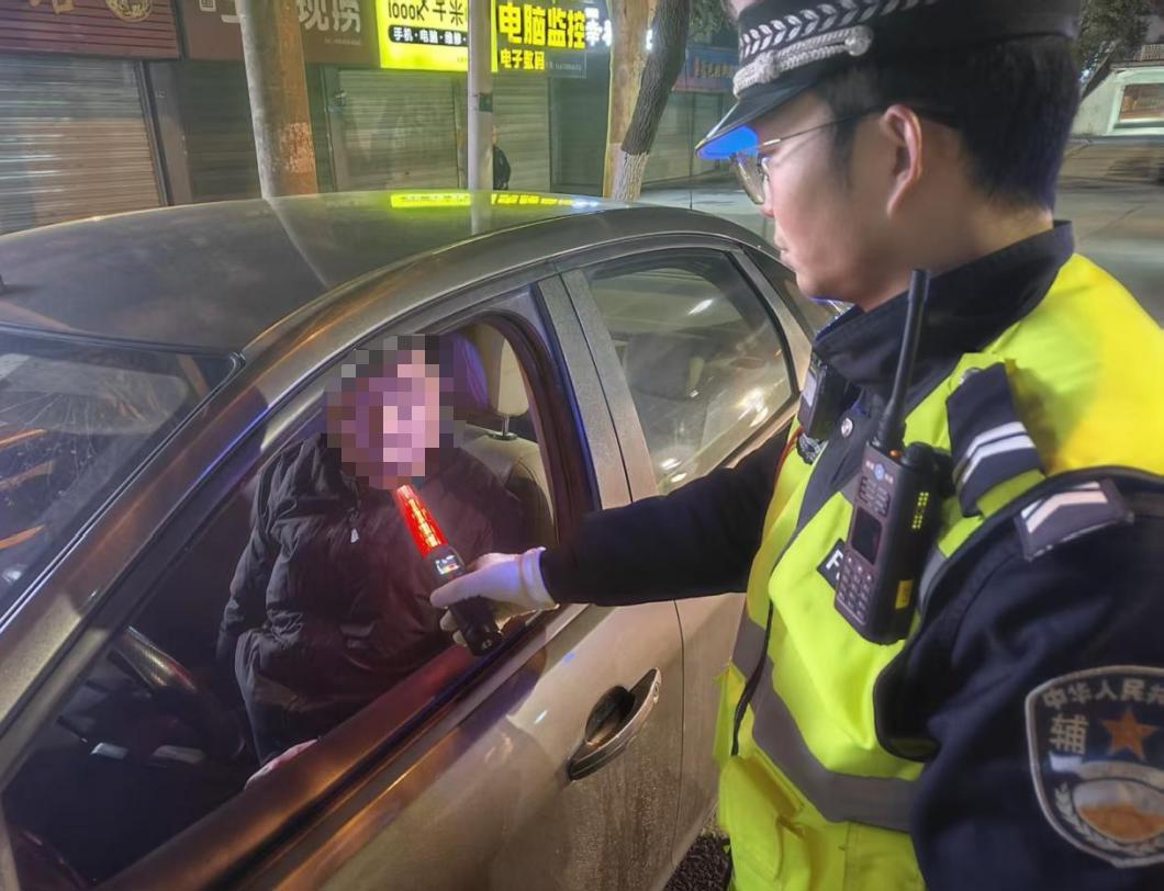 ▲ 鄂州交警在樊川大道路段开展酒醉驾专项整治行动