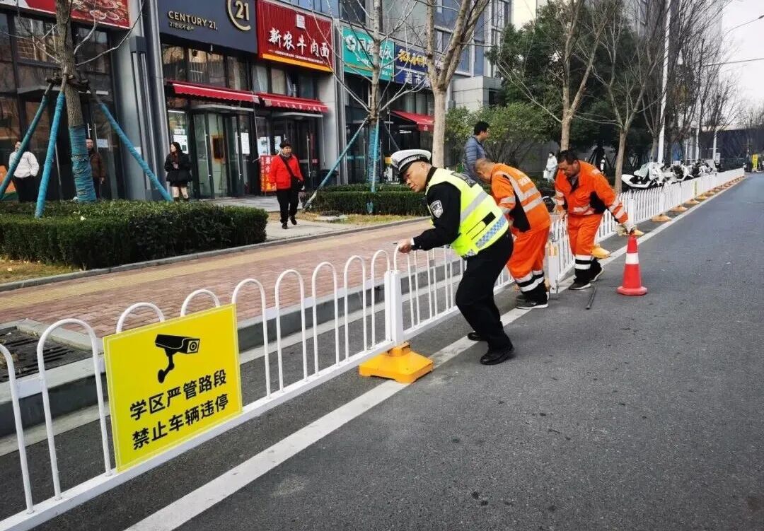 ▲ 武汉交警在开学前夕对校园门前的交通设施开展全面排查整修