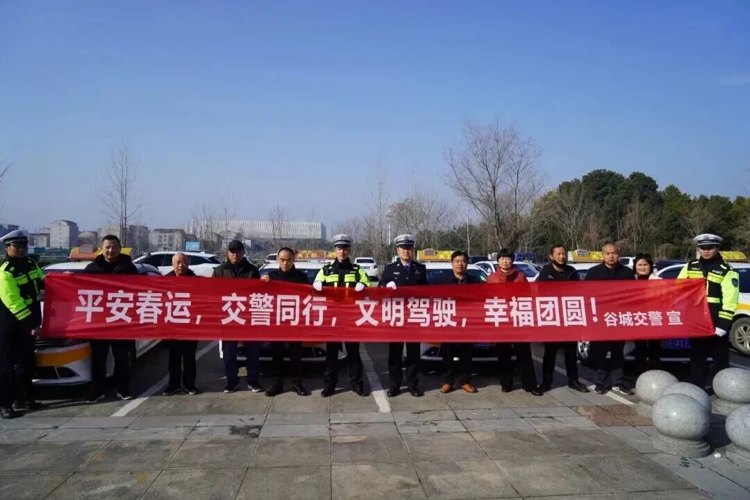▲ 襄阳交警在谷城县汽车站广场开展2026年春运启动仪式
