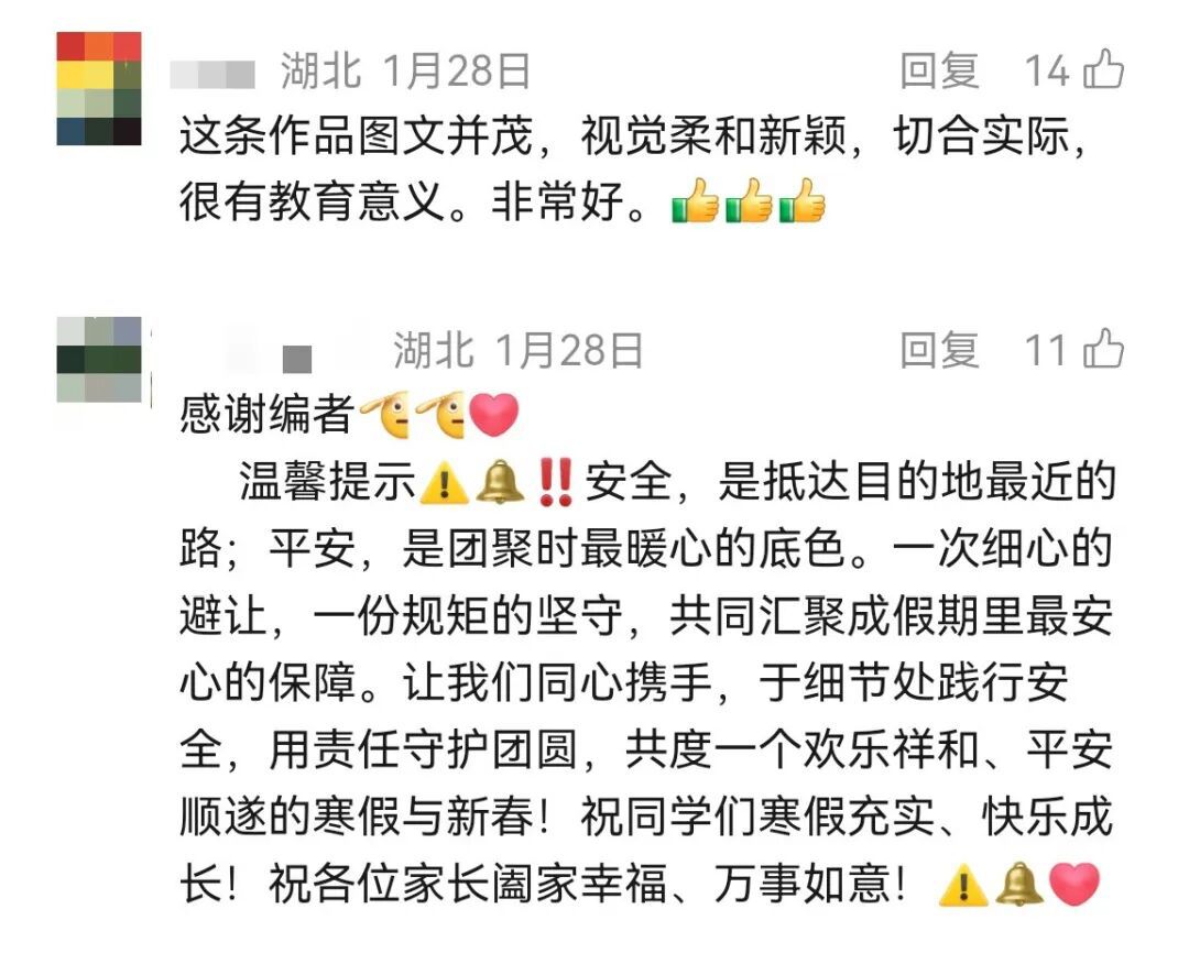 精准宣教青少年群体,寒假前及春季开学期间,厅交管局联合教育部门推出《事关安全,湖北交警致同学、家长们寒假出行的一封信》和《十二生肖交通微课堂》动画视频,通过生动有趣的形式普及安全知识,覆盖青少年群体超百万人次。