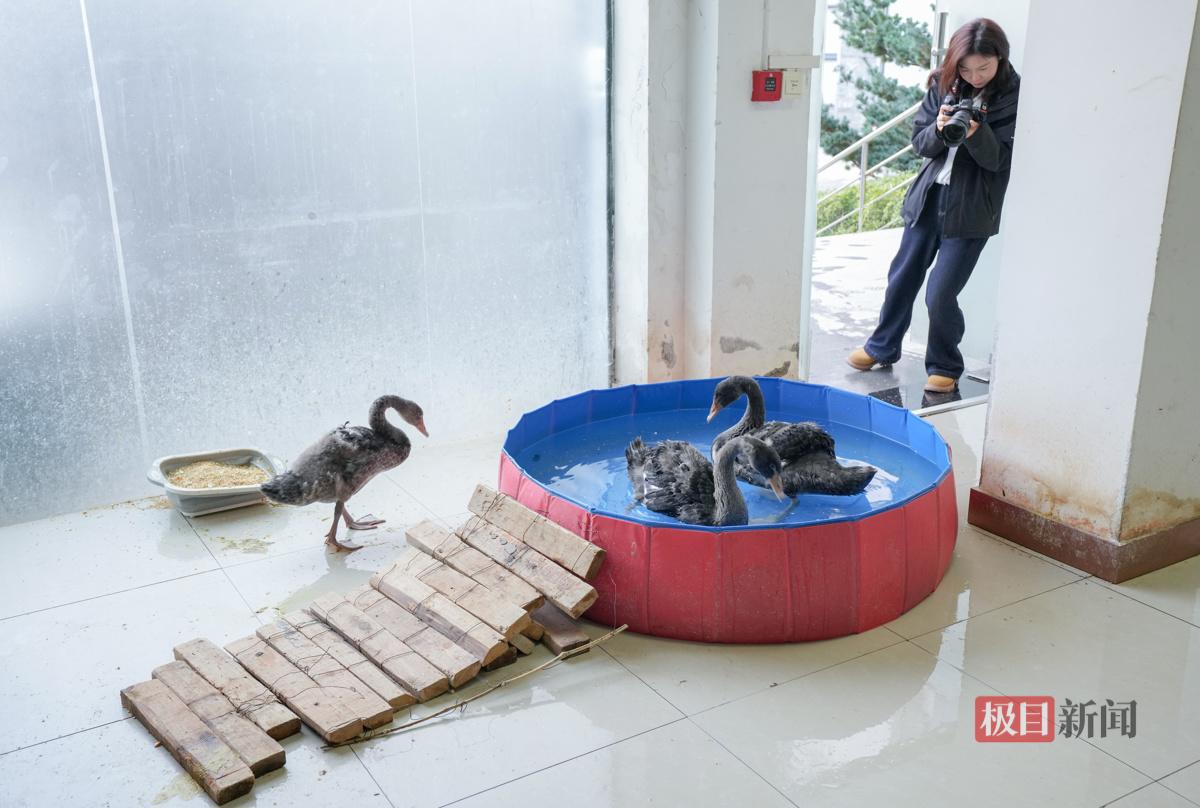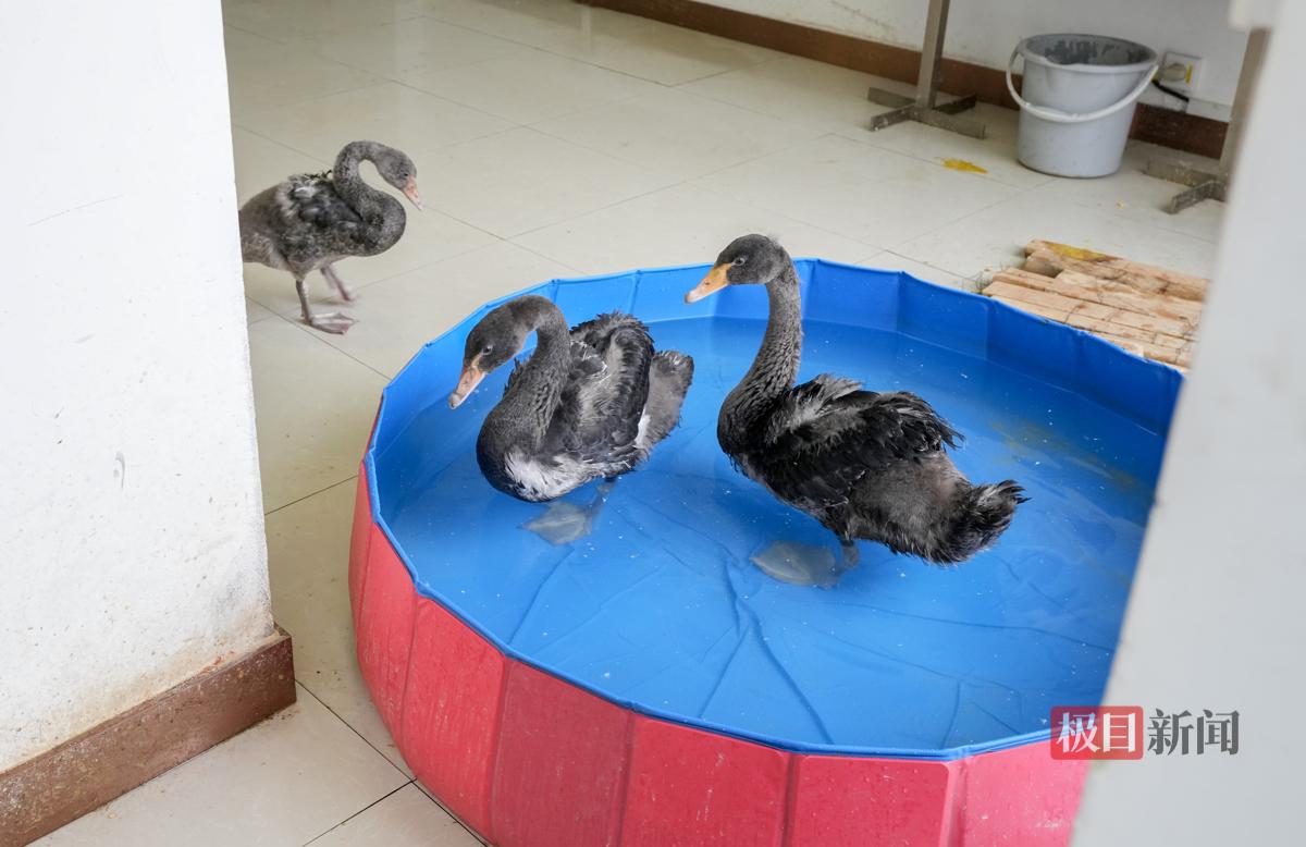 近日,新闻记者走进小镇一间特别的恒温室,见到了这三只小家伙。它们已经4个月大了,正值褪绒换羽的成长期,活动室里不仅有食物,还设有游泳池,供它们嬉水锻炼。