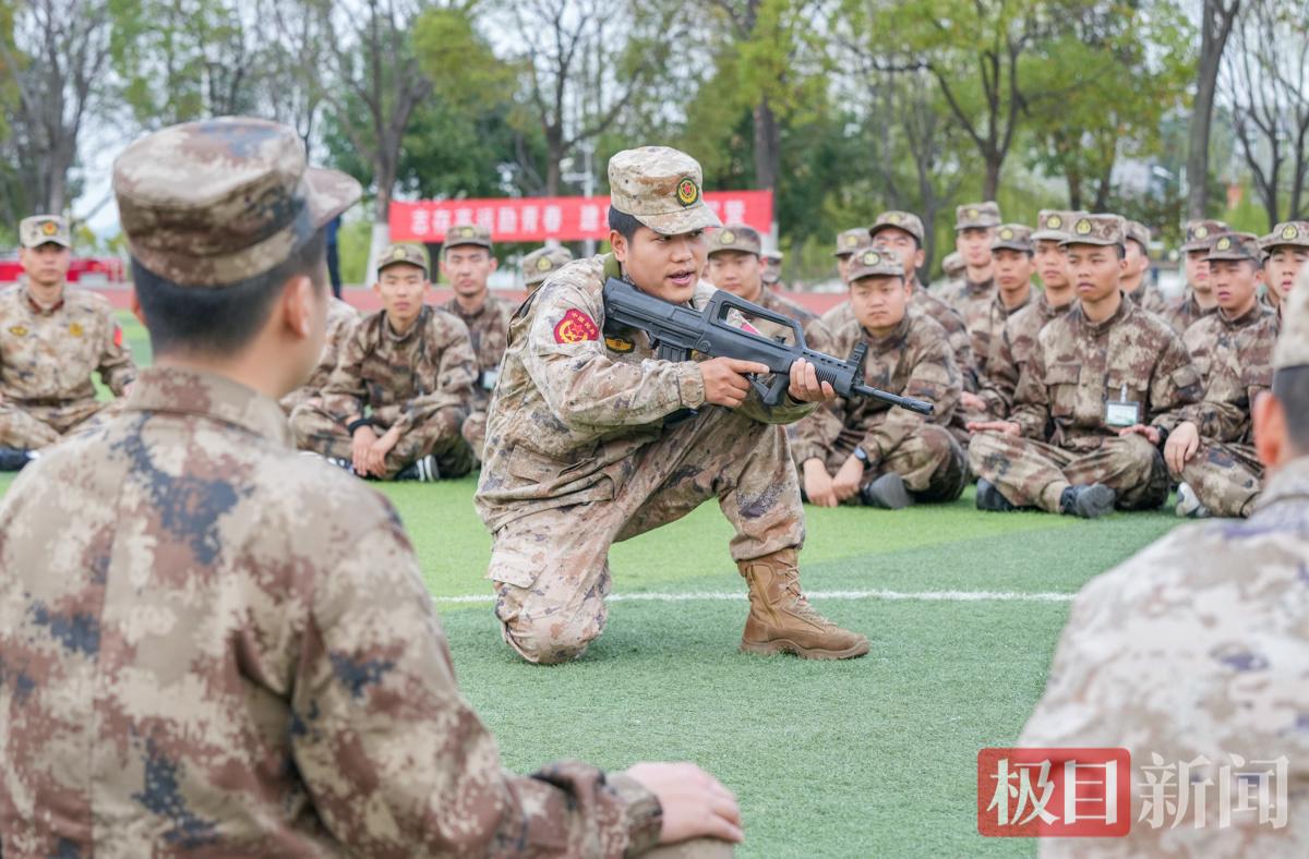 江岸区预定新兵、武汉文理学院2022级学生杨子函,当天也在训练场上紧张训练中。他希望能到西藏或新疆等边疆艰苦地区服役,立志把青春挥洒在祖国最需要的地方,用忠诚与担当守护边疆安宁。
