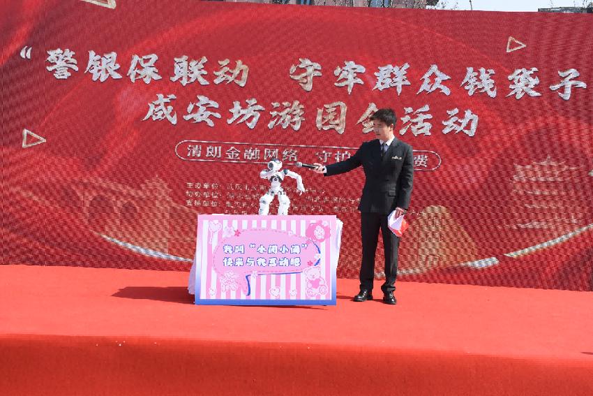 上午9点半,“警银保联动,守牢群众钱袋子”启动仪式正式开启,“大家好,我是反诈宣传员小闹!”一个银白色的小机器人登上舞台,瞬间成为全场焦点。人工智能机器人“小闹”眨着灵动的大眼睛,跳起了舞蹈,并与主持人热情互动,让现场群众大呼神奇。憨态可掬的模样逗得全场笑声不断,反诈知识也在轻松互动中入脑入心。