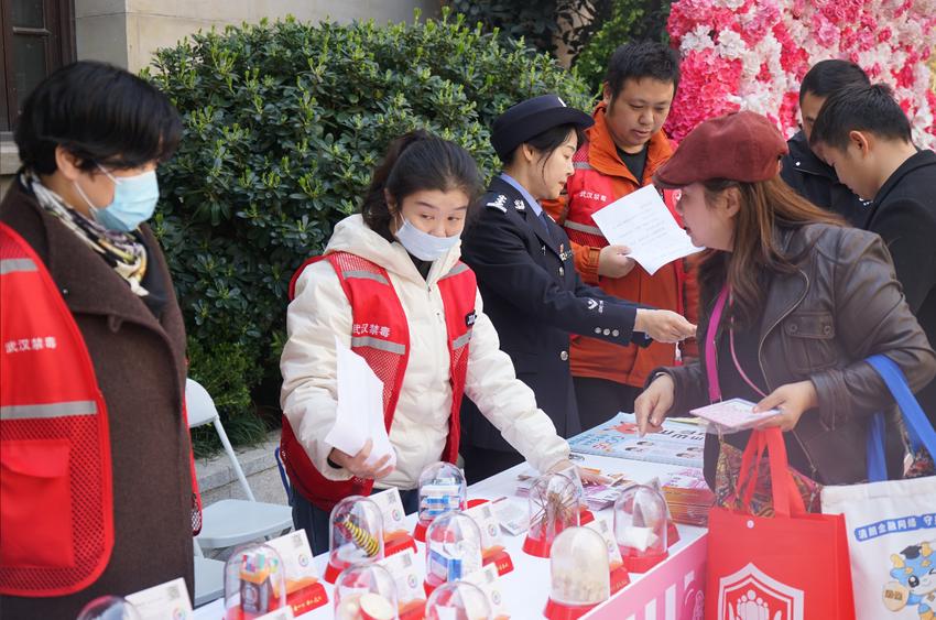 禁毒摊位上,数十种仿真毒品模型一字排开,从传统毒品到伪装成“跳跳糖”“奶茶”的新型毒品,逼真的外观让围观群众倒吸一口凉气。“这些看起来像零食的东西,都是新型毒品!”面对疑问,江岸区公安分局禁毒大队民警和社区禁毒社工们结合宣传单页详细讲解毒品的危害与辨别技巧,提醒大家提高警惕。互动问答环节中,观众们争先恐后举手,声音里满是对毒品的坚决抵制。一旁的拍照打卡框内,市民手持禁毒标语,用镜头记录下自己参与禁毒宣传的决心。