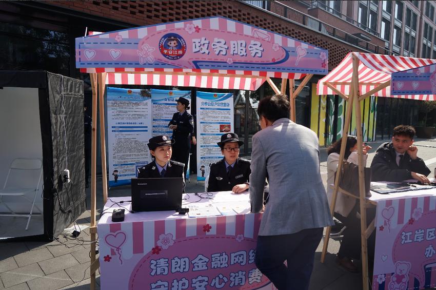 为切实提升广大市民的安全意识和风险防范能力,武汉市公安局刑侦支队、武汉市公安局交管支队携手湖北省银行业协会、湖北省保险行业协会,联合江岸公安、民政、街道等多部门,在汉口历史风貌区咸安坊举办此次“警银保联动,守牢群众钱袋子”主题大型游园活动。