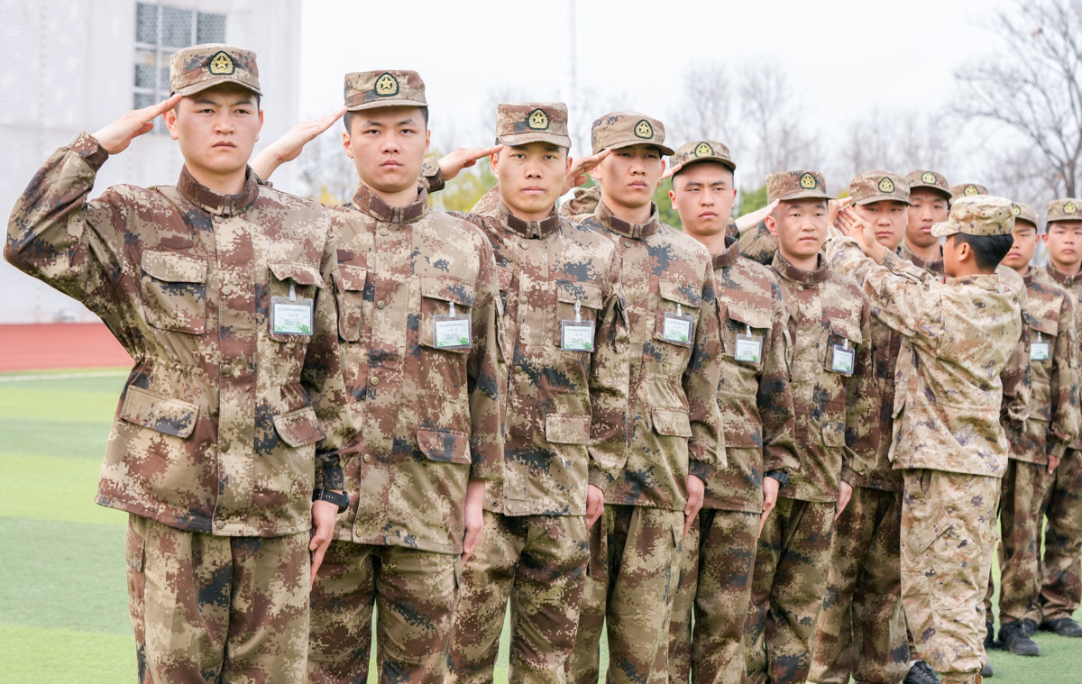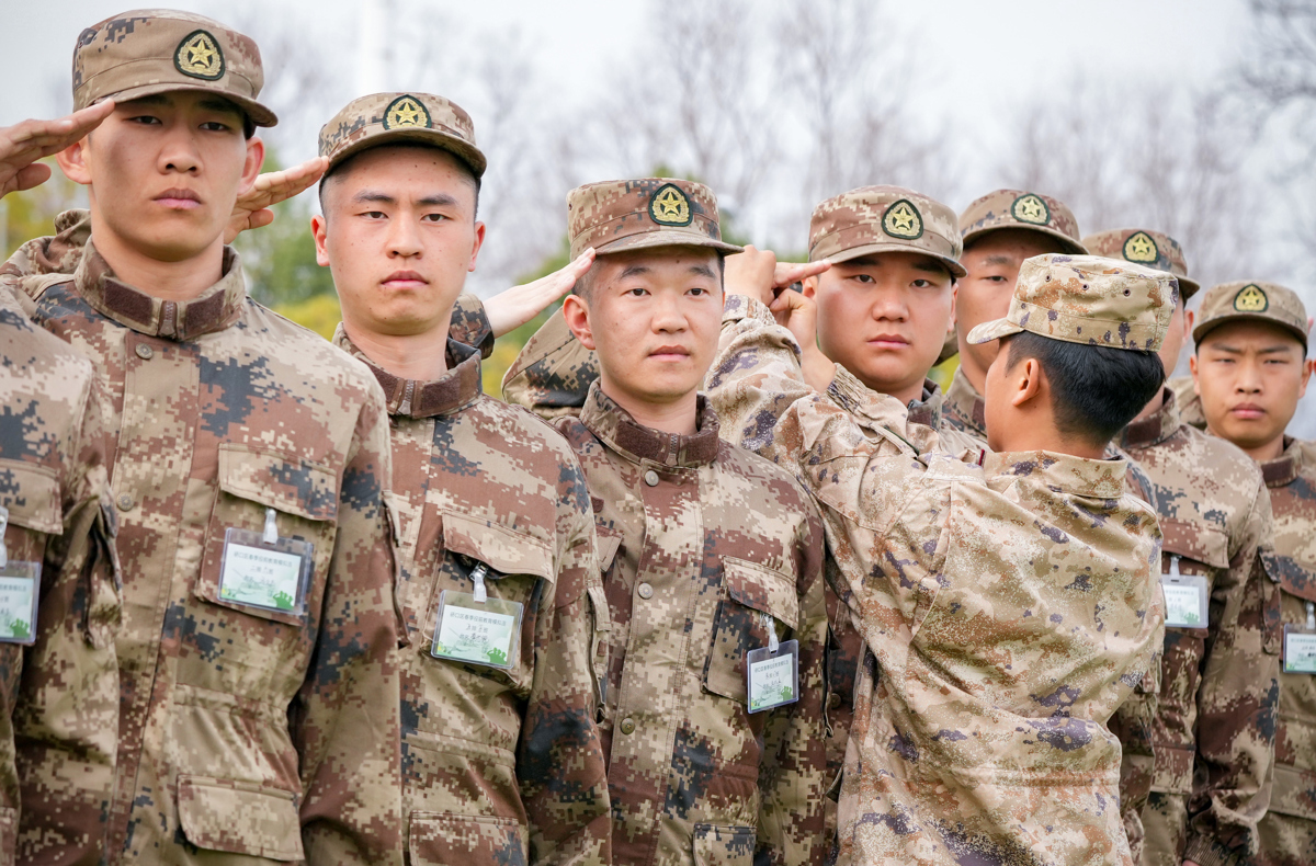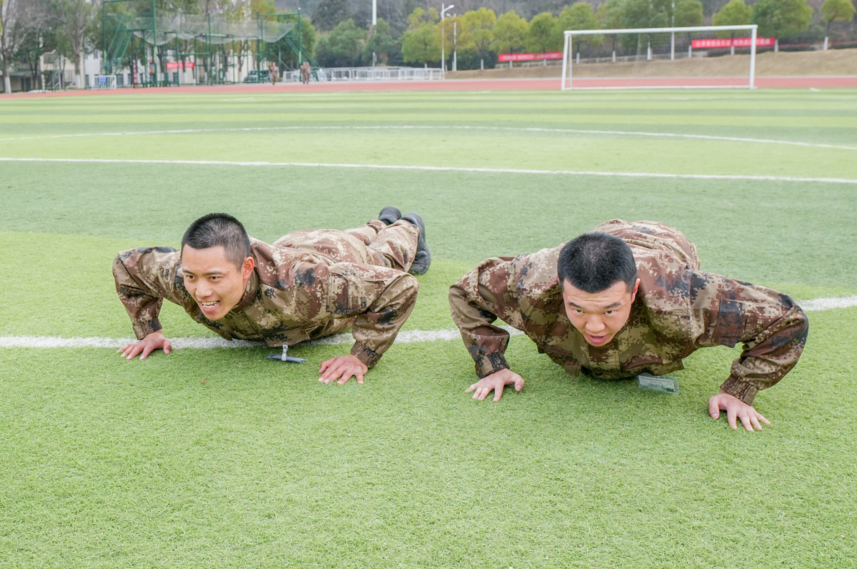 3月14日下午,新闻记者现场看到,即使对基本的队列和基础战术已经很内行,梁林飞和王以立仍在虚心接受现场教官下达的各种训练指令,并尽最大努力去完成好。