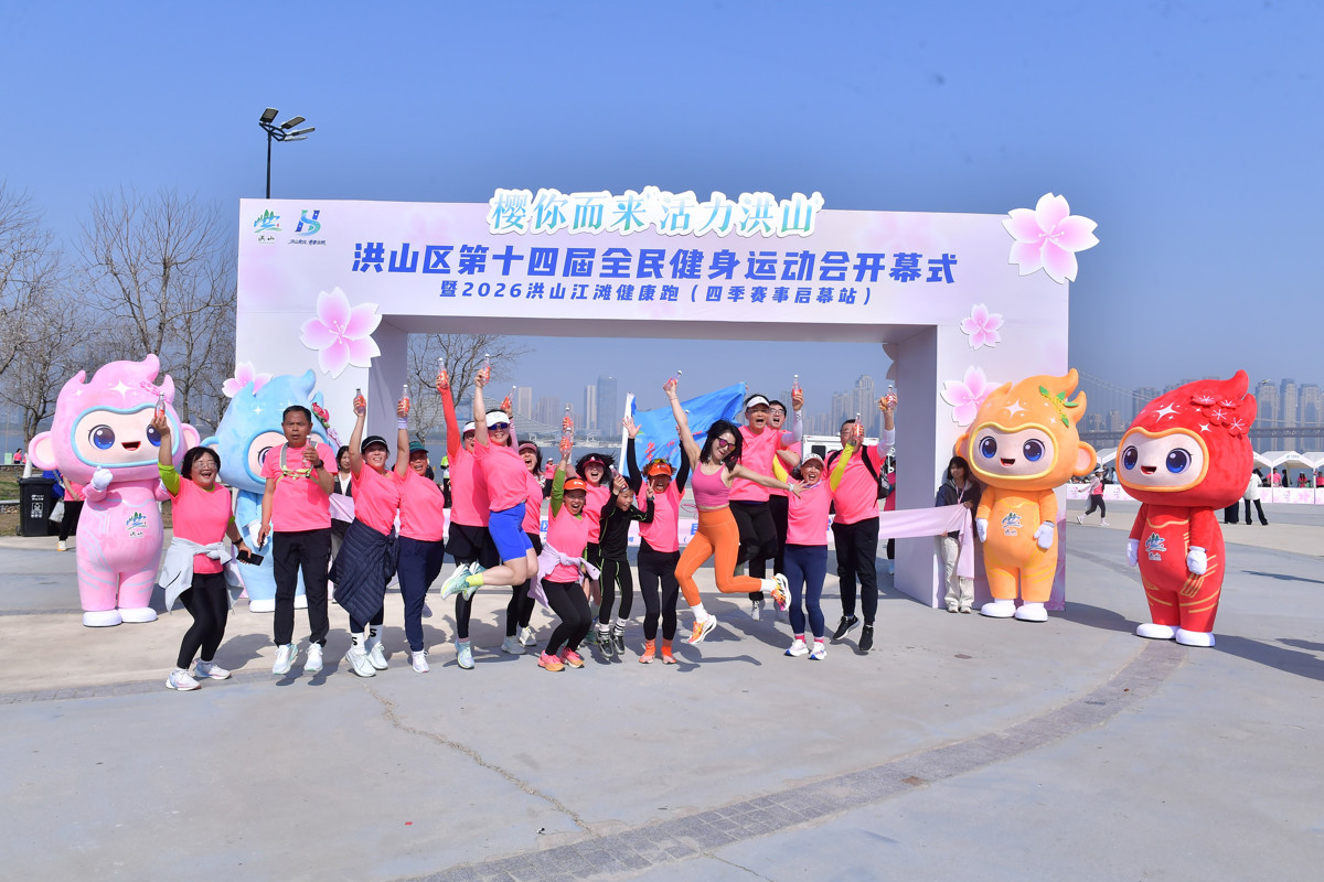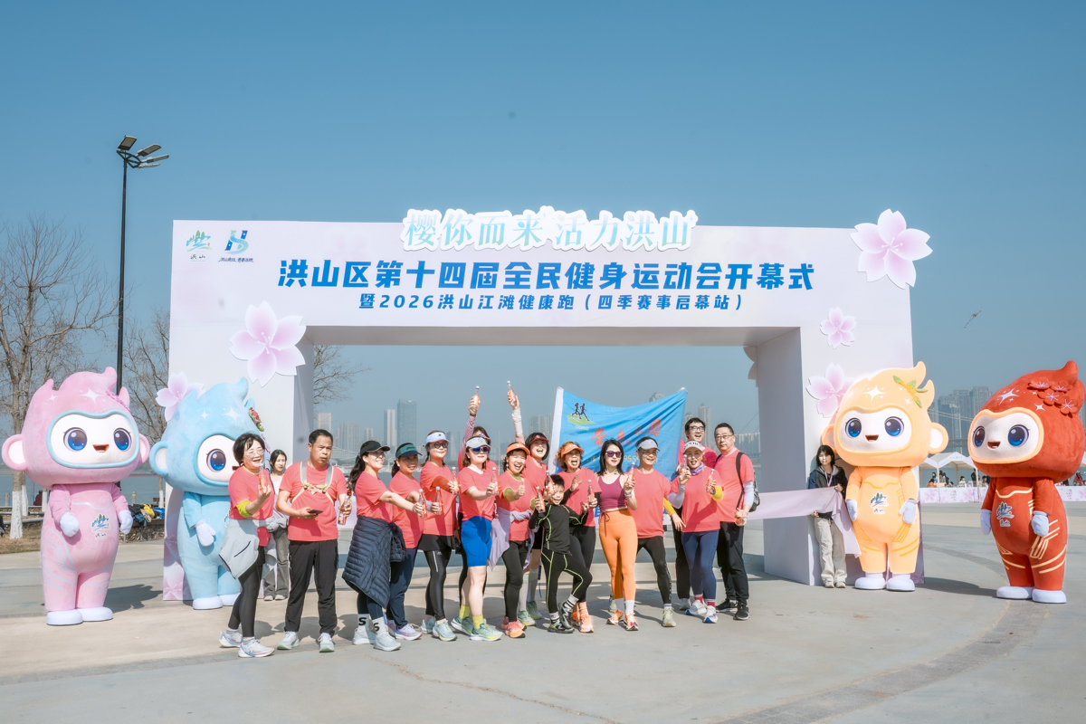 春樱作序,江风为引。3月14日,在武汉洪山江滩落英花园的烂漫樱花丛中,洪山区第十四届全民健身运动会开幕式暨2026洪山江滩健康跑活动热力开跑。活动现场,洪山区首次发布“洪小体”卡通形象及“洪动四季”赛事IP,宣告武汉市民将首次拥有一个区级层面系统化、全年不间断的官方赛事日历。