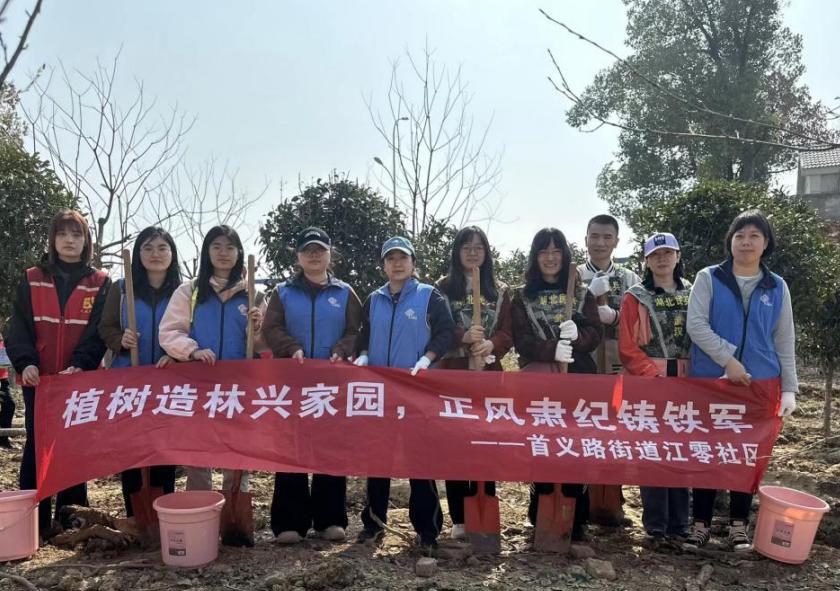 近日,武汉市武昌区首义路街道江零社区联合街道纪检干部、民兵代表,参加“共植‘大爱湖北慈善林’共建绿色生态环境”公益植树活动,大家共赴这场守护绿色的公益之约。