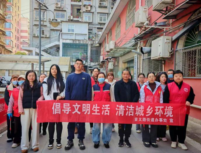 劳动现场,大家分工协作,对首义路、楚善街两侧人行道、绿化带进行拉网式清理,重点清除烟头、纸屑、塑料袋、枯枝落叶等白色垃圾,累计清理卫生死角10余处;对沿线乱堆乱放的废弃杂物进行清理,规范摆放共享单车20余辆;铲除墙面小广告200余处。