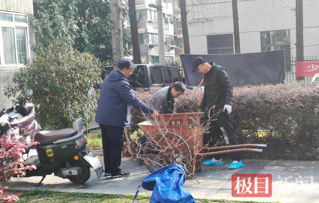 10号上午9点半,志愿者们来到了达婆婆家门口,正式拉开了这场“绿色接力”的序幕。搬运环节,志愿者们格外小心,大家用软布仔细垫在大花盆底部,再稳稳地放到小推车上。