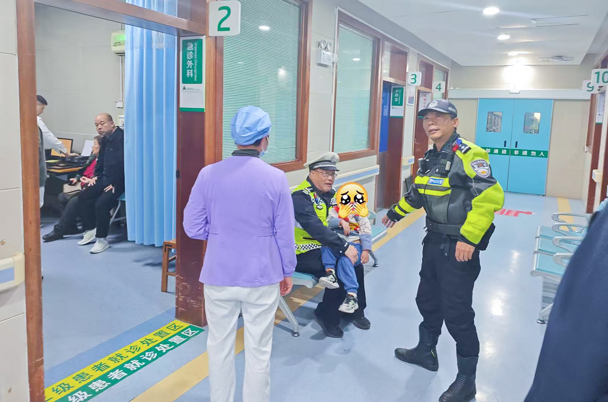 3月14日下午2时许,东湖交警一中队中队长杨帆、民警郭建波正在渔光小路疏导交通,一名中年男子怀抱哭闹不止的儿童焦急跑来求助——孩子不慎摔跤导致胳膊骨折,急需送医。此时景区周边道路车流密集,打车困难,家长心急如焚。