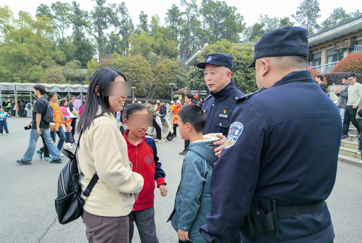 随着日头渐高,磨山景区人流增大,摩肩接踵。15时许,交通管理大队辅警叶飞扬在鲁磨路植物园路路口执勤时,发现一名男孩独自徘徊、神情紧张,疑似与家人走散了。他立即上报分局情报指挥中心,中心随即调度磨山派出所出警。民警胡德峰、辅警冯靓迅速赶到现场。经询问,男孩姓熊,今年9岁,家住江夏区,当日与母亲、姐姐来东湖赏花,在磨山南门走散,一路寻找家人最后走出了景区。因为紧张,男孩一时记不起家长电话。胡德峰将其带回派出所安抚,准备通过其他途径寻人时,指挥中心传来消息:王女士报警称孩子走失,特征与熊同学吻合。经确认,王女士正是孩子母亲。胡德峰随即驱车将男孩送到磨山南门。见孩子平安,王女士连声道谢。