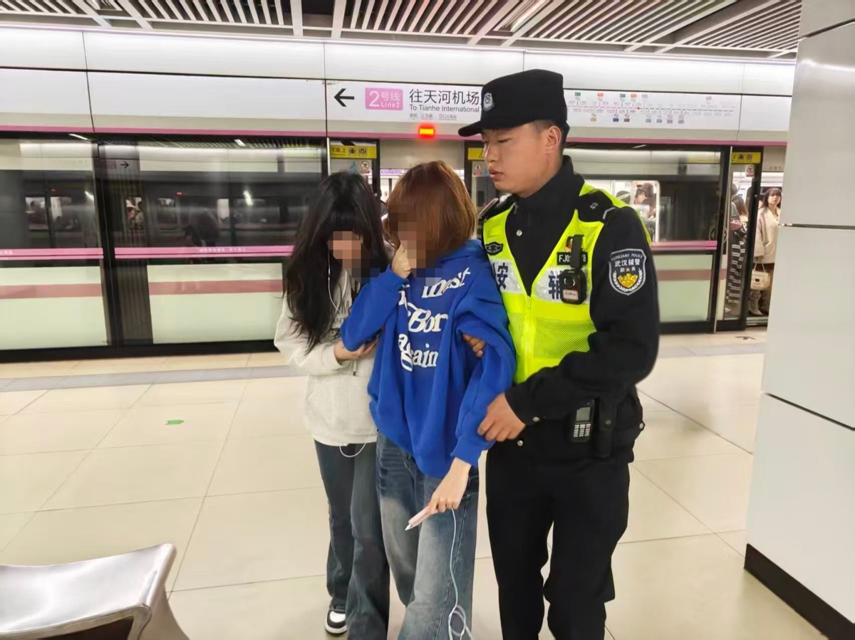 当日13时42分许,武汉市公安局轨道交通管理分局机动大队机动三组辅警栗守朋、刘琰在武汉地铁2号线小龟山站站台巡控时,发现一名年轻女乘客神情痛苦地蜷缩着蹲在角落,她的朋友在旁边手足无措、十分担心。栗守朋立刻上前询问情况,了解到两个女孩是在校大学生,一起结伴到龟山赏樱,因空腹出游,导致体力不支晕倒在站台上。