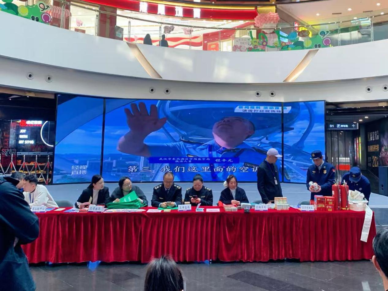 在江汉区,区消防救援局联合区市场监督管理局、湖北省消防产品质量检验检测中心在江汉路步行街商圈设立消防科普阵地。活动现场,消防员与市场监管部门、检测中心工程师组成宣传小组,通过发放科普手册、展示真假消防产品实物、现场对比讲解等多种形式,向过往群众及商圈经营户普及消防产品识假辨假技巧、科学选购要点以及日常使用维护知识。