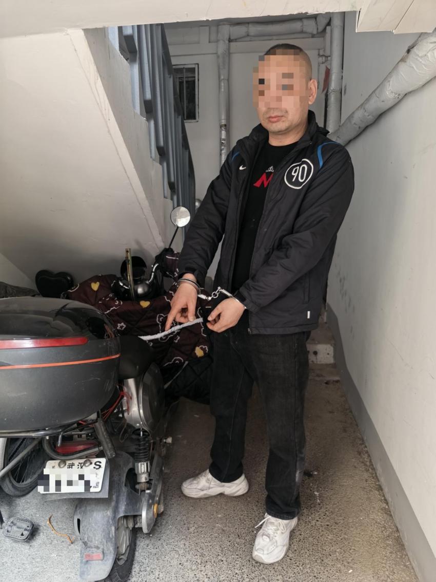 在分局刑侦大队的大力支持下,民警很快锁定了视频中男子的活动轨迹。3月11日,民警在淌湖二村某小区附近发现了那辆醒目的蓝色顶棚电动自行车。为不打草惊蛇,民警立即展开布控蹲守。12日上午9时许,一名男子骑着该车前往建设新村方向。