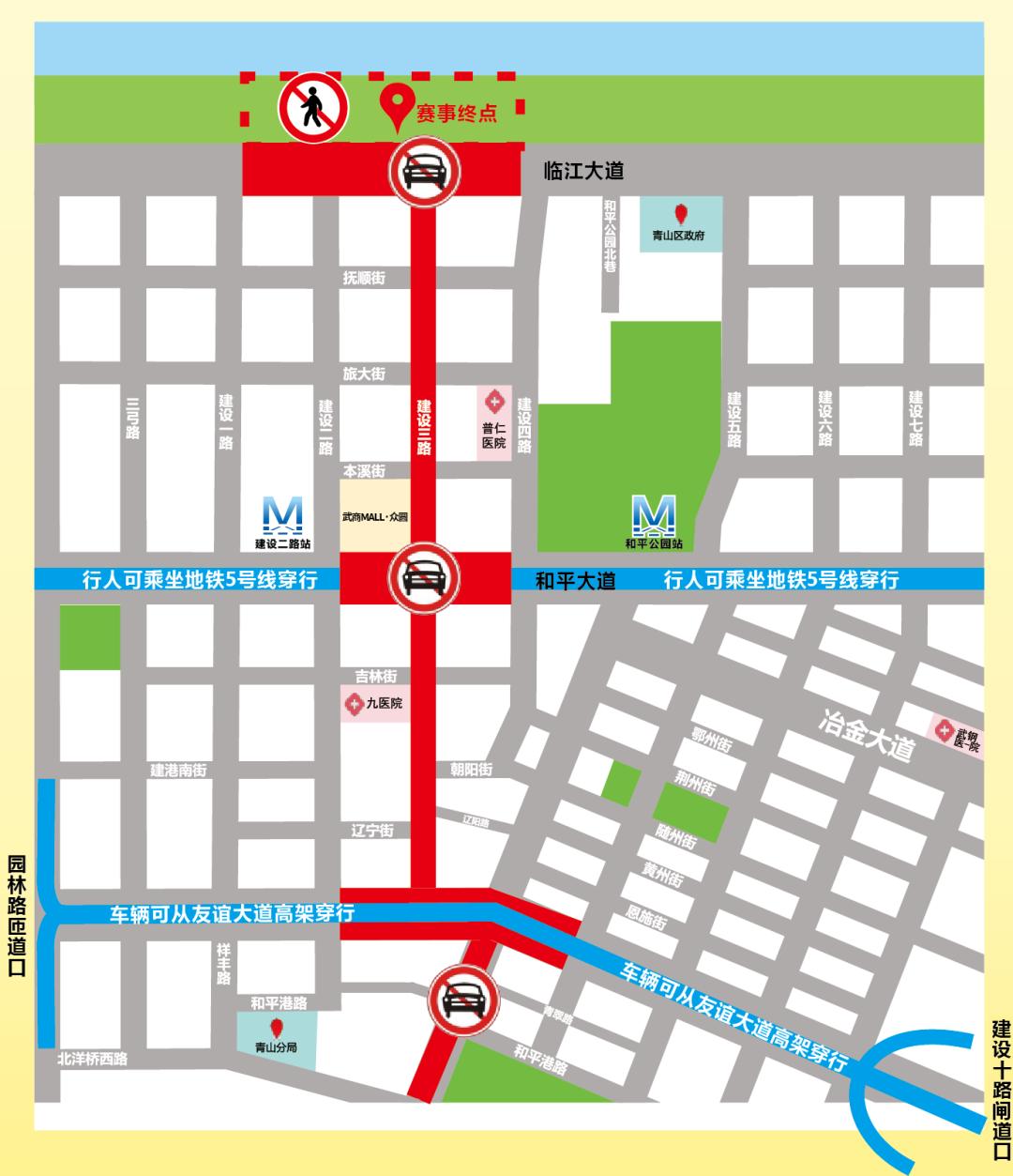 因青山区赛事线路处于赛事末端,交通管制时间较长,预计青山段赛事活动时间为3月22日9时至14时。