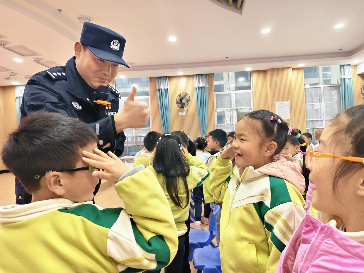 活动尾声,工作人员开展“安全大闯关”有奖问答,巩固所学知识,孩子们踊跃举手、积极应答,现场氛围热烈。民警还展示了对讲机、警棍等警用装备,邀请小朋友代表穿戴小警帽体验,消除孩子们对警察的陌生感,进一步增进警民情谊。最后,全体师生起立,共同宣读“安全小卫士”誓词,将安全与法治意识深深镌刻在心中。