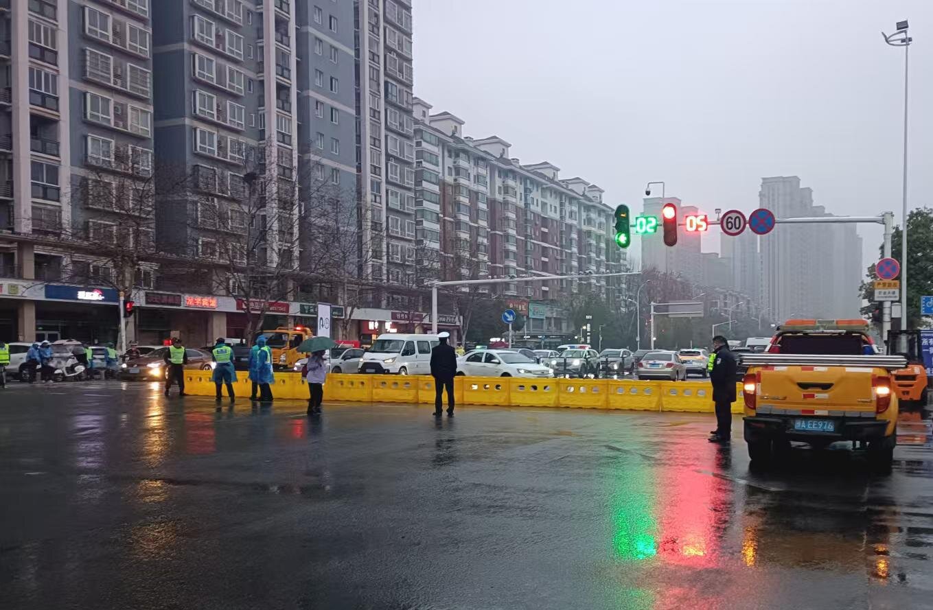 当天清晨5时35分,天空微微下着小雨。黄陂区城市管理综合执法大队直属一中队保障队员们已经整装列队完毕。在简短的动员部署后,这支队伍迅速奔赴各自的“战场”,一场与时间赛跑、与天气较量的保障行动就此拉开帷幕。