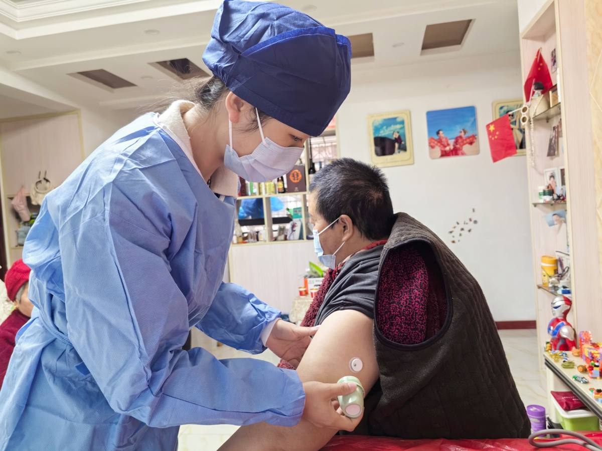 上门服务随后按计划进行。患者曲女士是一名血糖控制不佳的糖尿病患者,出院后因行动不便,日常监测困难。家属在咨询协和东西湖医院内分泌科坐诊医生金进后,医护团队携动态血糖仪上门。护士将一枚硬币大小的传感器贴于患者上臂,该设备可连续监测15天血糖数据,并通过蓝牙实时同步至患者手机及医院后台。如血糖值出现异常,系统将自动发出预警,便于医护人员及时介入。曲女士表示,此前每日需多次指尖采血,疼痛且易遗忘,新型设备极大减轻了日常管理负担。