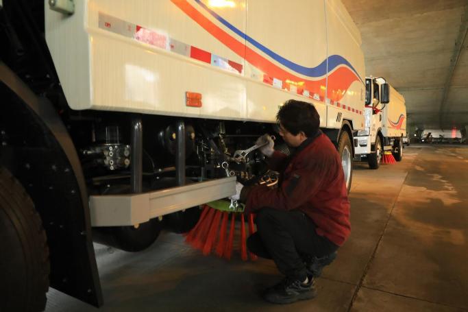 至17日下午5时,近百辆环卫车已全部调试完毕,整装待发。