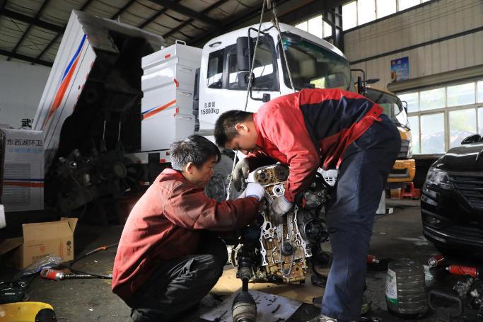3月17日,涂师傅带着两位徒弟来到硚口古田停保场,对硚环集团的汉马保障环卫车辆进行了体检。“环卫车就像跑者的双腿,赛前热身做足了,关键时刻才不能‘掉链子’。”涂师傅一边用扳手敲着轮胎检查胎压,一边对徒弟叮嘱道。