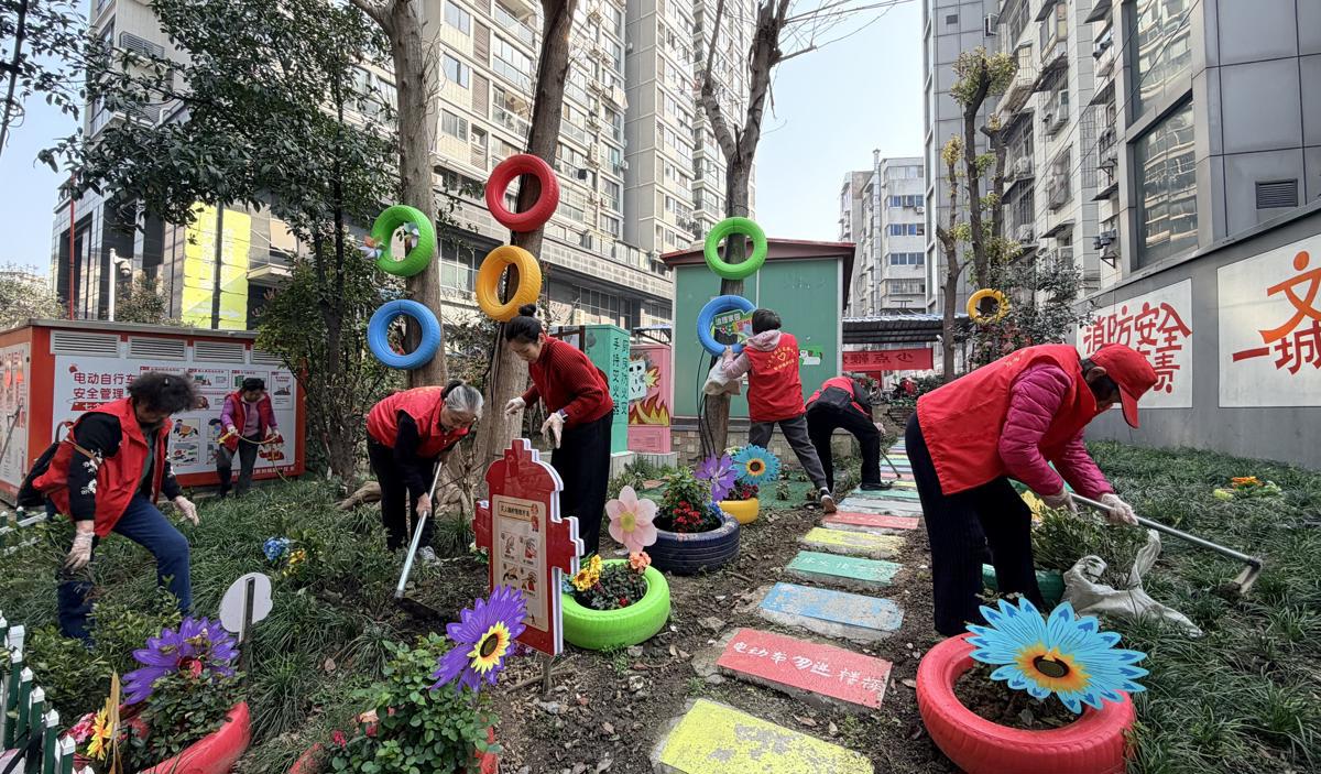日前,武汉市武昌区黄鹤楼街道彭刘杨路社区文明路片区的“消防口袋花园”里一派热火朝天的劳动景象。