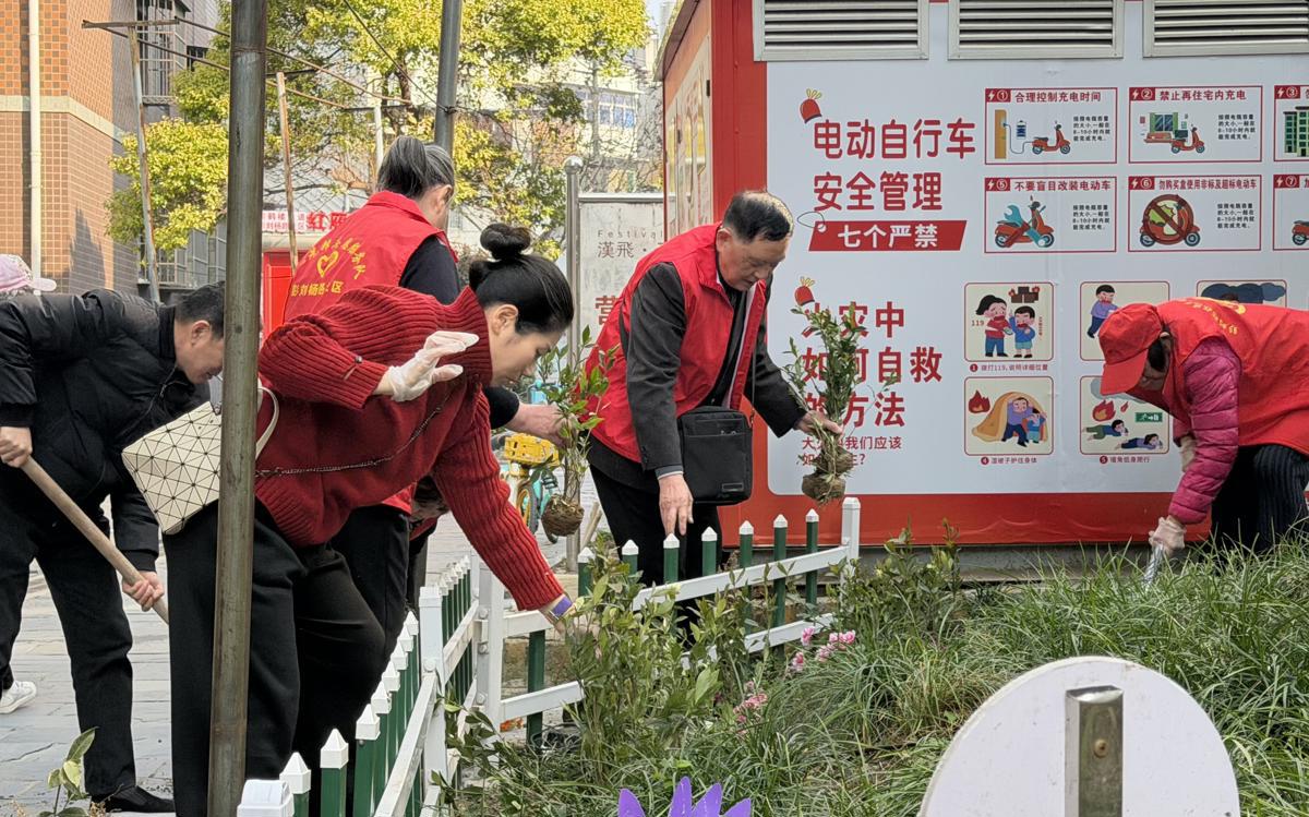 此次植树活动是文明路片区“共建共治共享”治理模式的延续。去年9月以来,社区党委牵头联合汉飞物业、片区居民、志愿者等多方力量,将这片闲置荒地改造为集休闲观赏与消防宣传于一体的“消防口袋花园”。物业负责大型树木修剪和环境保障,志愿者参与日常养护,社区搭建议事平台收集居民反馈,形成了“大家的事情大家办、共同的家园共同建”的良好氛围。