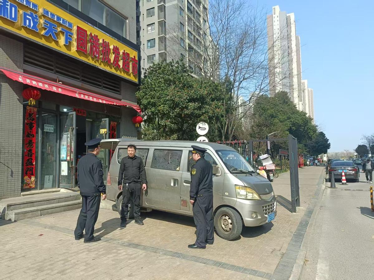 超市车辆长期占据长江新区保利圆梦城小区出入口,影响行人出行,引起居民投诉。日前,长江新区城管不推诿、不拖延,快速劝离长期“霸占”出入口的违停车辆,并通过源头管控为居民彻底打通了“舒心路”。