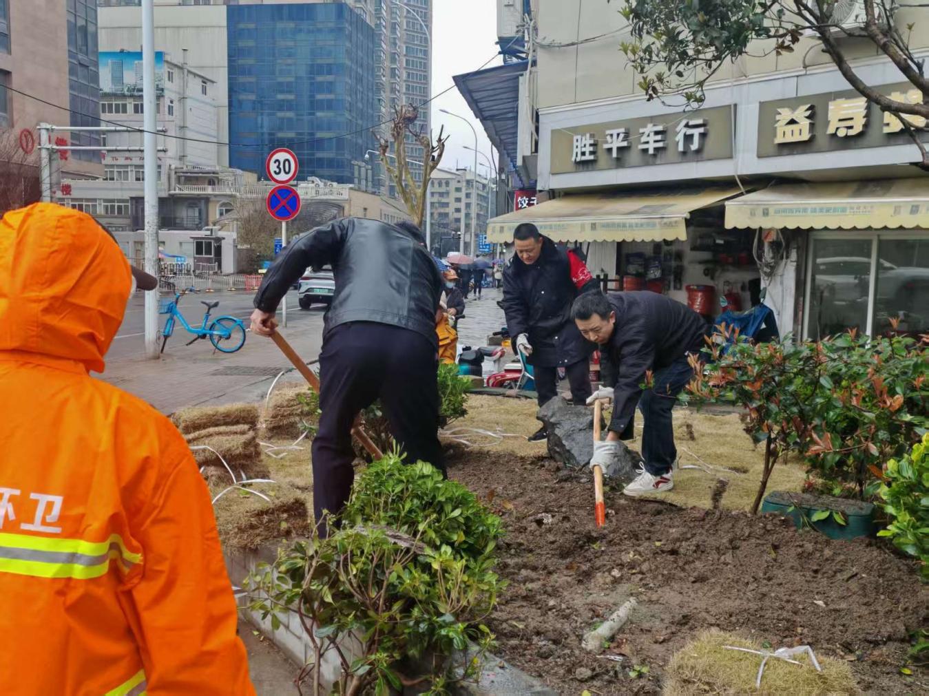 围绕八大攻坚行动中“绿”色提升要求,汉中街道以“增绿、补绿、护绿”为抓手,聚焦汉江桥上桥口、主次干道、街角空地、沿线绿化带等关键区域,全面开展绿化提质攻坚行动。针对辖区内绿化带斑秃、草皮破损、绿植稀疏等问题,街道组织专业绿化队伍,抢抓春季绿化黄金时节,精准排查、逐一整改,全力补植优质草皮、补种常绿灌木,让裸露土地披上绿装,让残缺绿化带重焕生机。