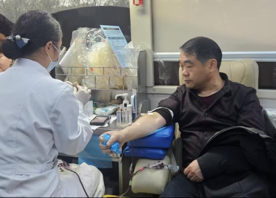 上午,医护人员在社区指定地点布置采血场地,摆放采血器材和宣传资料,向居民讲解献血流程及相关注意事项。退役军人叶惠民是当天第一位到场献血的居民。他在登记台填写无偿献血登记表,配合医护人员完成健康征询和信息核对。叶惠民是一名退役军人,有着30年军旅经历。在体检区,叶惠民接受血压测量和血液初筛。他说自己常年锻炼,身体状况良好。筛查合格后,他进入采血区完成献血。采血过程中,他与医护人员和其他献血者交流,分享自己在部队的经历,并鼓励更多人参与无偿献血。