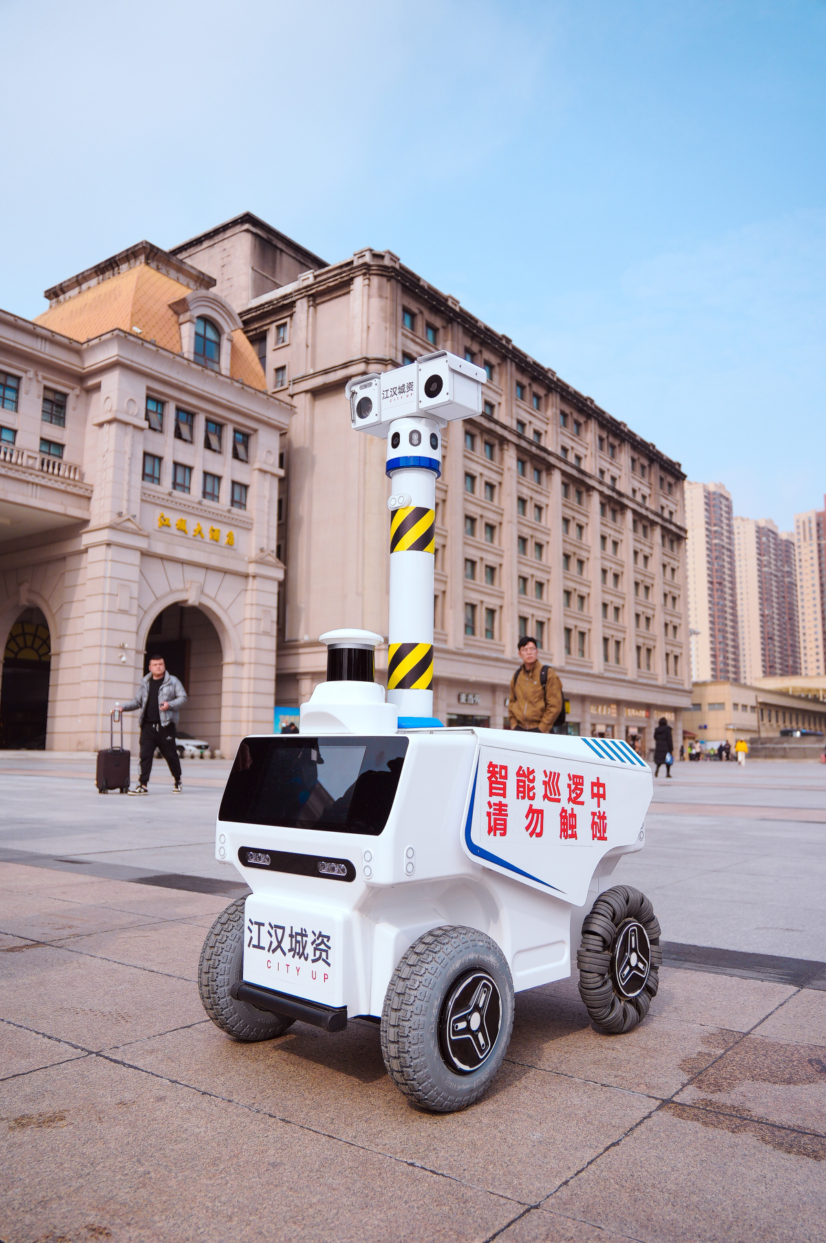 “正在巡逻工作中,请勿靠近阻挡,请勿轻信拉客人员,谨防上当受骗。”3月18日,汉口火车站南广场上,一台圆头圆脑的机器人正用标准的普通话来回提醒路人。不少拖着行李箱的旅客忍不住多看两眼,还有人掏出手机拍照——这位新“员工”,确实有点潮。