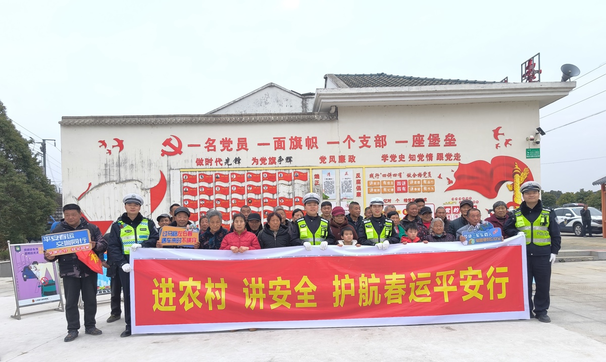 2月5日,孝感交警走进大悟县大新镇八口塘村,开展“进农村讲安全,护航春运平安行”主题宣传活动