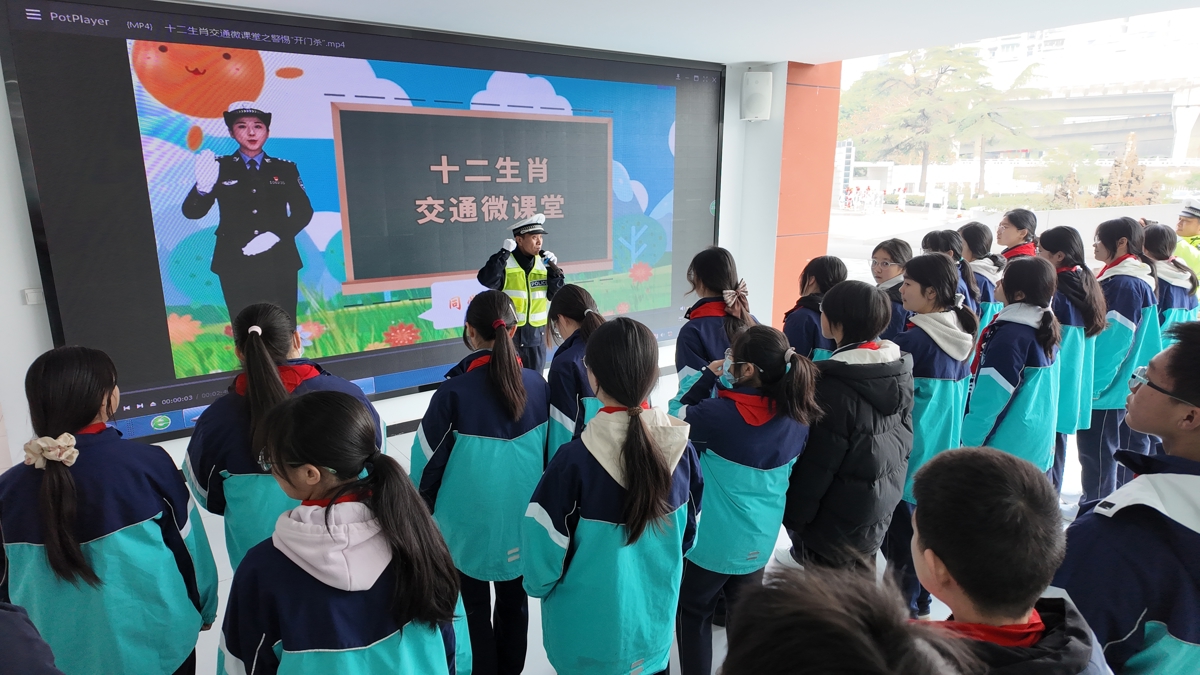 3月4日,宜昌交警在宜昌市明珠中学开学第一课上,通过《十二生肖交通微课堂》视频课件,宣传交通安全知识