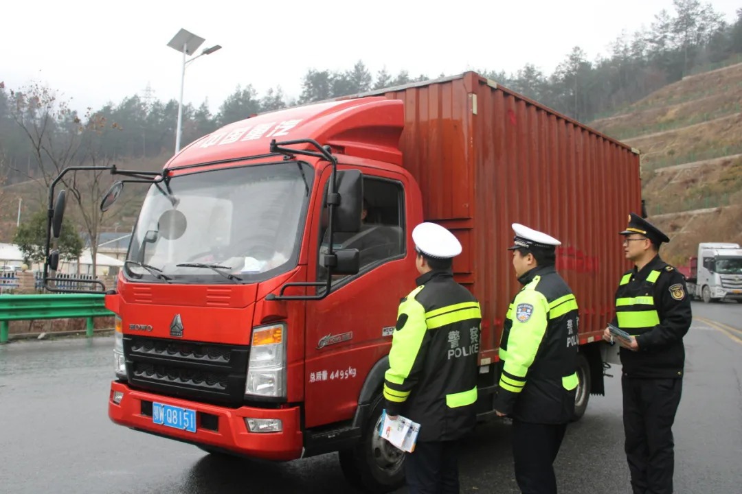 襄阳交警对重点车辆进行安全检查并对驾驶员进行安全宣传
