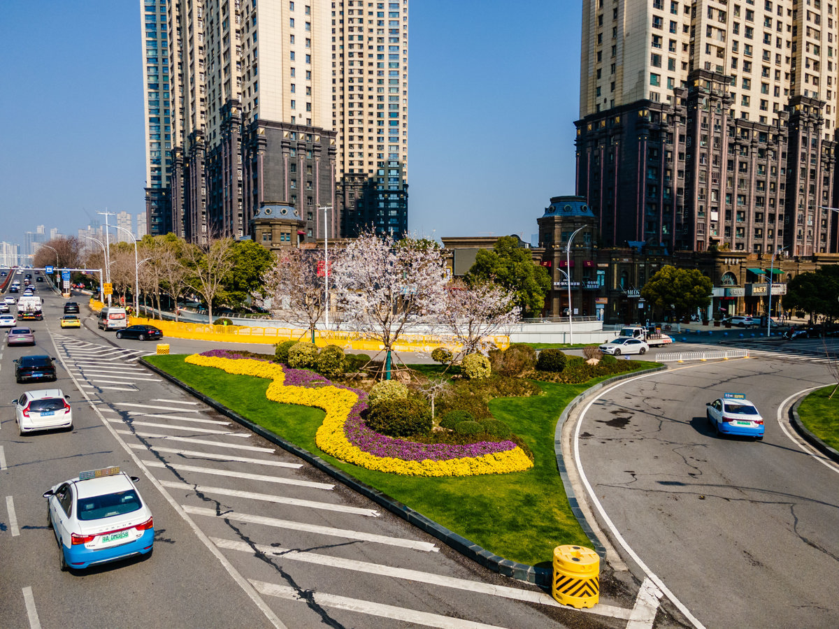 在临江大道、楚汉路、天鹅路等关键点位布置时令花卉10万盆,在新生路、楚汉路栽植樱花160余株,在黄鹤楼至天鹅路沿线摆放箱栽樱花,打造“樱花赛道”特色景观。针对东四路、白鹭街等12处樱花相对集中的赏樱点位,对绿化带进行清杂培土、裸土覆绿,对草坪、灌木进行修剪塑形,保持绿植生机盎然。