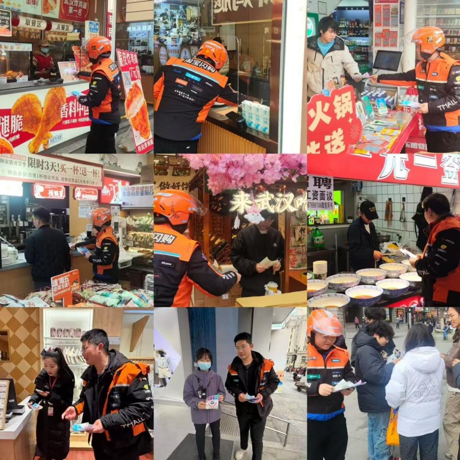 除了固定点位的宣传,本次活动打造的流动宣传矩阵,更是将禁毒宣传延伸至大街小巷,打通了宣传“最后一公里”。20余名“蜂”火轮新就业群体志愿服务队的外卖、快递小哥,化身“流动禁毒宣传员”,在配送餐食、包裹的同时,将定制禁毒宣传页、随单贴纸送到居民手中,当天累计发放随单宣传物料超600份。