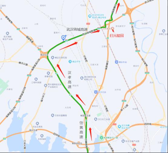 祭扫高峰期经由岱黄高速到前川地区的驾驶员可选择绕行线路以避开归元陵园通行缓慢路段(桃园集互通处绕行汉孝高速→横店互通→武汉绕城高速→黄陂互通→岱黄高速);未绕行车辆可能会受到排队进入归元陵园车辆影响,请提前沿最左侧车道通行,谨慎驾驶、注意安全。