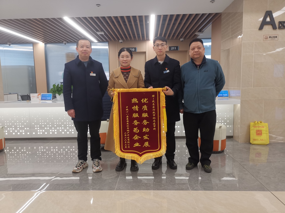 “无论问多少问题,工作人员从来没有不耐烦,始终笑脸相迎、耐心讲解,心里特别暖。”3月13日,中铁十八局集团武汉房地产开发有限公司胡女士,带着印有“优质服务助发展、热情服务为企业”的锦旗,专程来到武昌区行政审批局,将锦旗送到工作人员手中,感谢他们在业务办理过程中的耐心指导和细致服务。