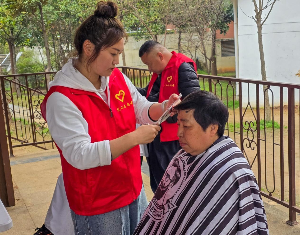 俗话说“二月二剃龙头,一年都有精神头”。在义剪服务区,志愿者理发师们早早就位,一边耐心地询问居民的修剪需求,一边熟练地挥舞着手中的剪刀。伴随着清脆的咔嚓声,居民们的精神面貌焕然一新。理发师们精湛的手艺和热情的服务态度,赢得了现场居民的一致好评,现场洋溢着温馨祥和的节日氛围。