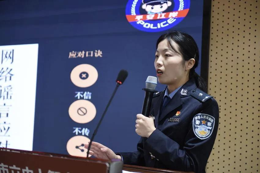 3月11日清晨,武汉市新洲区实验中学的开学典礼上,多了一位特殊的“主讲人”:武汉市公安局新洲区分局邾城街派出所“00后”女民警沈慧茹。她身着警服,以“知心姐姐”的身份,为师生带来一堂别开生面的反诈宣讲课。