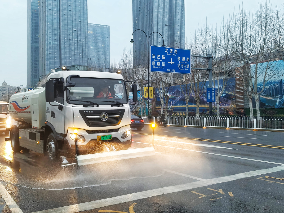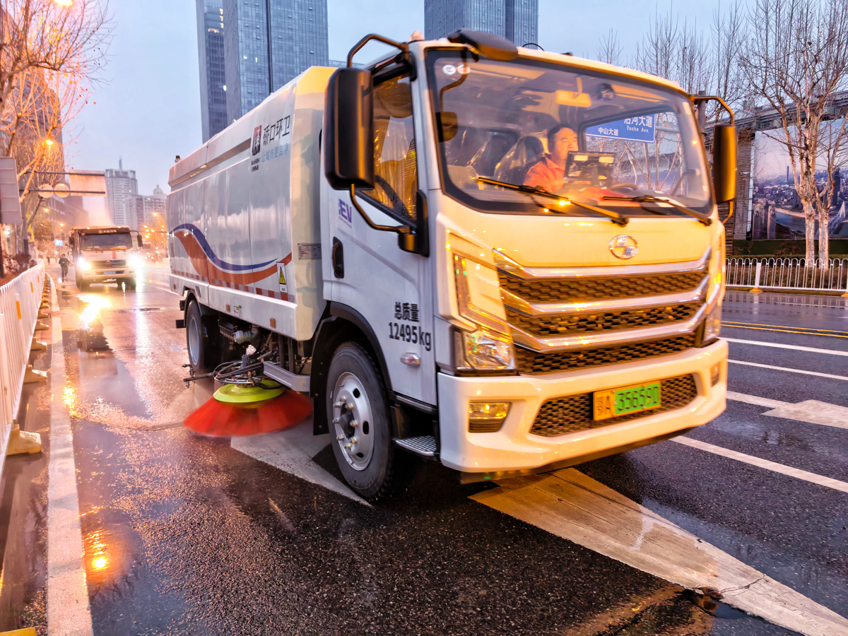 据了解,为了确保今年汉马赛道的整洁和赛事期间清洁工作的高效运转,硚口区制定了“赛前深度清洗、赛中动态保洁、赛后快速清场”的分段式方案,并组建了100名环卫工人和近10台绿色新能源环卫作业车辆的环卫保障突击队,硚口区福心环卫设备公司全程伴随保障,汉马临近前及赛事期间,这些绿色新能源环卫车辆将化身“移动清道夫”,在重点区域实施标准化清洗作业,对赛道路面开展“洗、冲、扫、收”一体化作业,高效清除路面污渍,实现“路见本色、亮标线”,配合沿线环卫工人动态保洁,以“全程无垃圾、人走场地净”的标准,为最美赛道保驾护航。