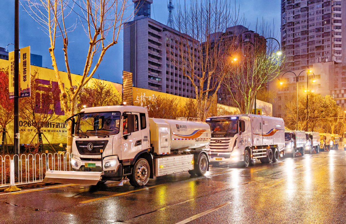 2026武汉马拉松将于3月22日7时30分鸣枪开跑。3月20日清晨,武汉市硚口城管提前启动了全方位的环境卫生保障工作,调集10台新能源环卫车,提前对汉马硚口赛道进行清扫保洁,为跑者打造一条“净善净美”的赛道。
