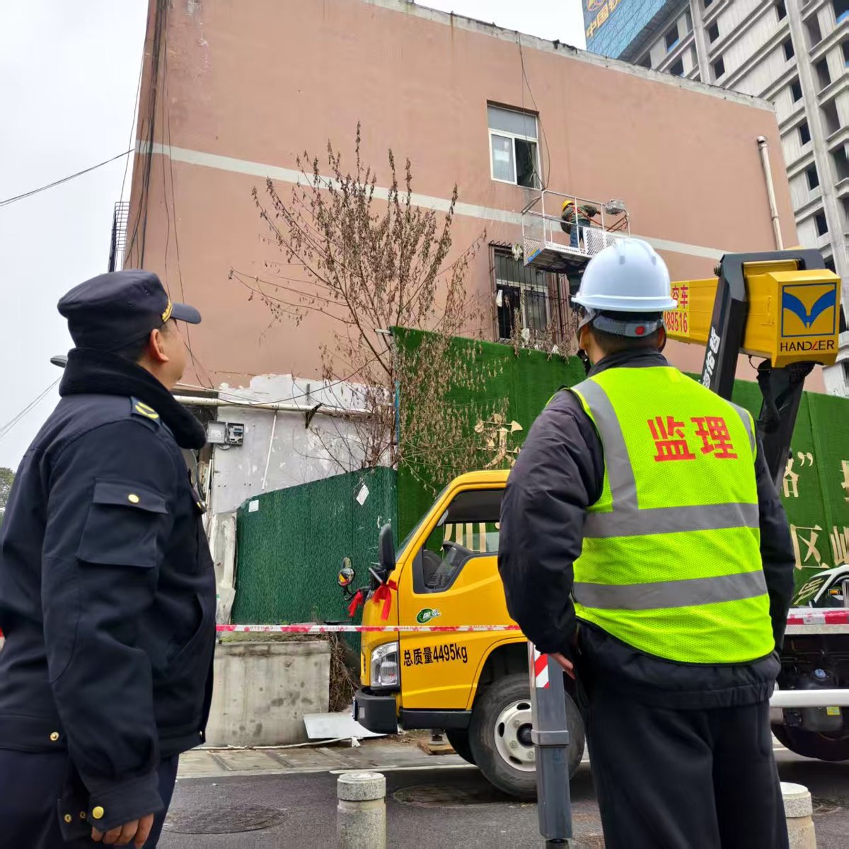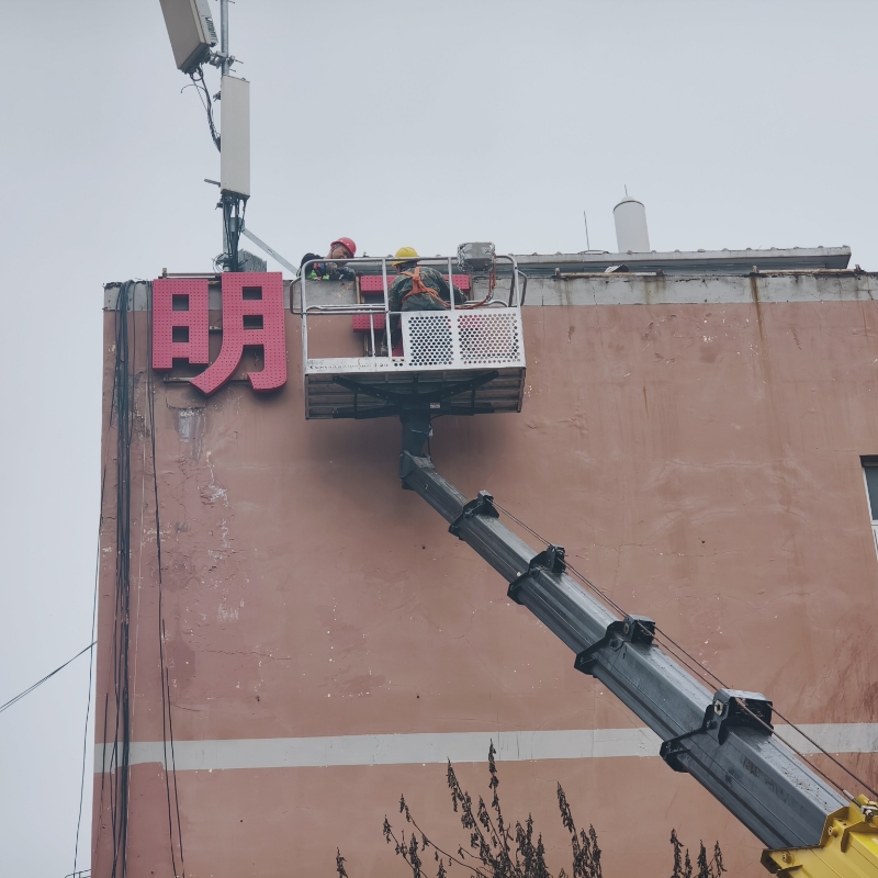 3月20日下午,位于武昌区复兴路上的明天宾馆前,一场拆除作业正在进行。武昌区城管执法局市容科联合黄鹤楼街道综合执法中心,组织专业施工人员,对宾馆顶部外墙上违规设置的“明天宾馆”几个大型墙面单体字广告进行拆除。这些单体字既存在一定的安全隐患,也影响了沿街立面的整体美观。拆除现场,工作人员设置了水马,疏导过往行人车辆,施工人员利用切割设备和高空作业车,将字体逐一拆除并安全吊运至地面,整个过程高效有序。
