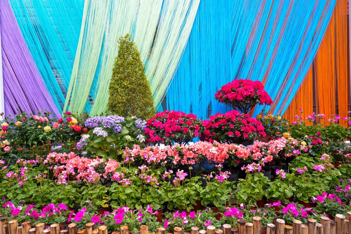 沿着书卷路往公正路方向前行,另一处70㎡的“彩虹织梦”主题景观则用明快的色彩点燃了整条赛道的活力。景观小品以赤橙黄绿青蓝紫的渐变背景板为主体,前方搭配了由郁金香、角堇、石竹等春季花卉组成的自然花境,错落有致的花团沿着“赛道”造型铺展,仿佛一条从地面生长出来的彩虹。
