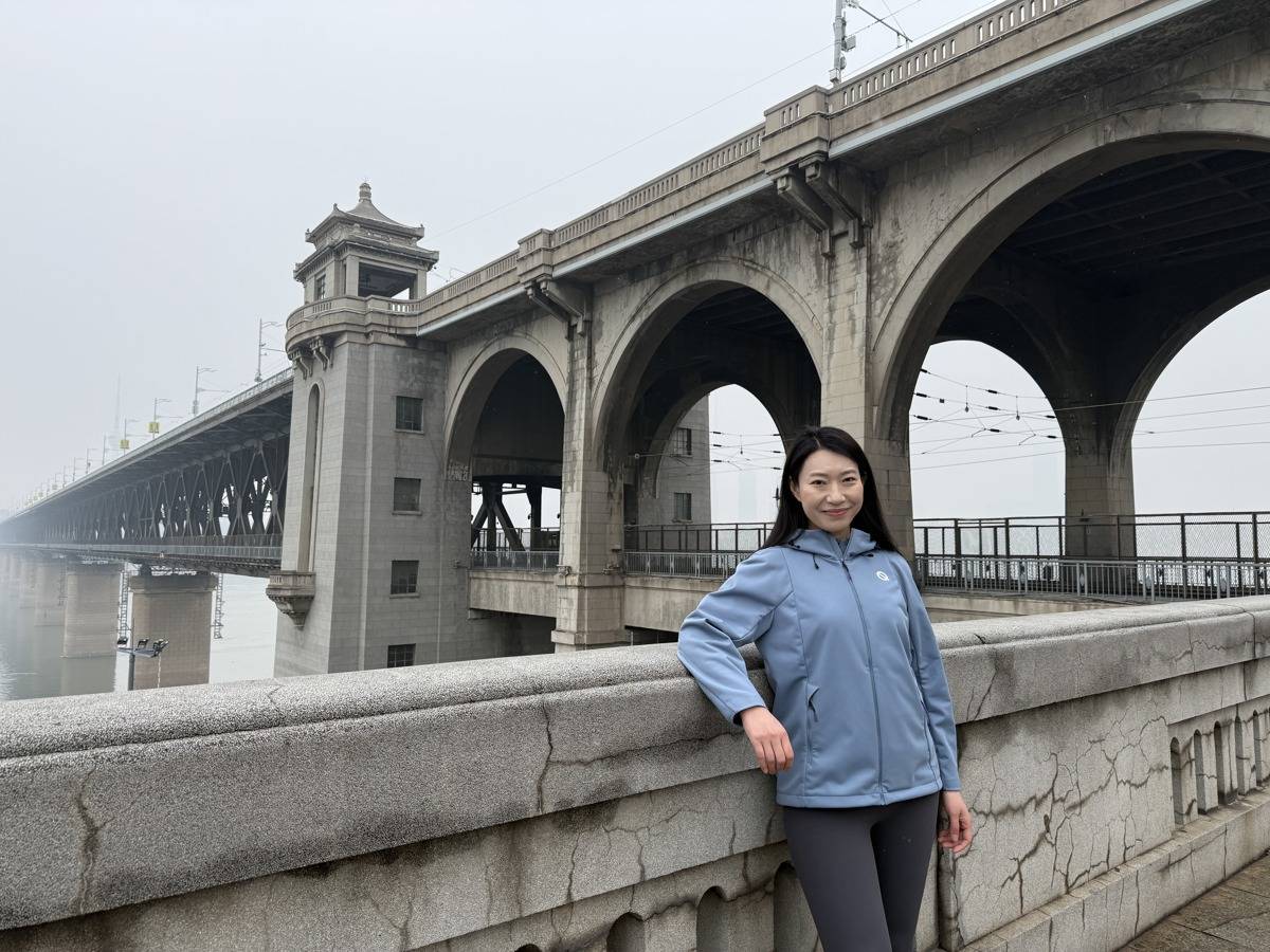 宋鹃在武汉长江大桥儿时留影地点(湖北日报全媒记者 倪娜 摄)